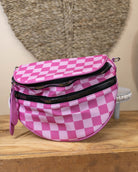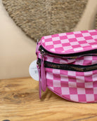 Stay hands-free and effortlessly stylish with our Check Yourself Bum Bag! Featuring dual zippers and a trendy hot pink and light pink checkered design, this bum bag is the perfect accessory for any on-the-go adventure. Keep your essentials close and make a fashion statement at the same time!