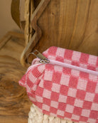 Checker Makeup Cosmetic Pouch- Hot Pink