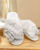 These grey open-toed house slippers combine comfort and charm for everyday wear. Their breathable design keeps your feet cozy without overheating, making them perfect for relaxing at home. Slip into these cute slippers for a soft, stylish touch to your loungewear.