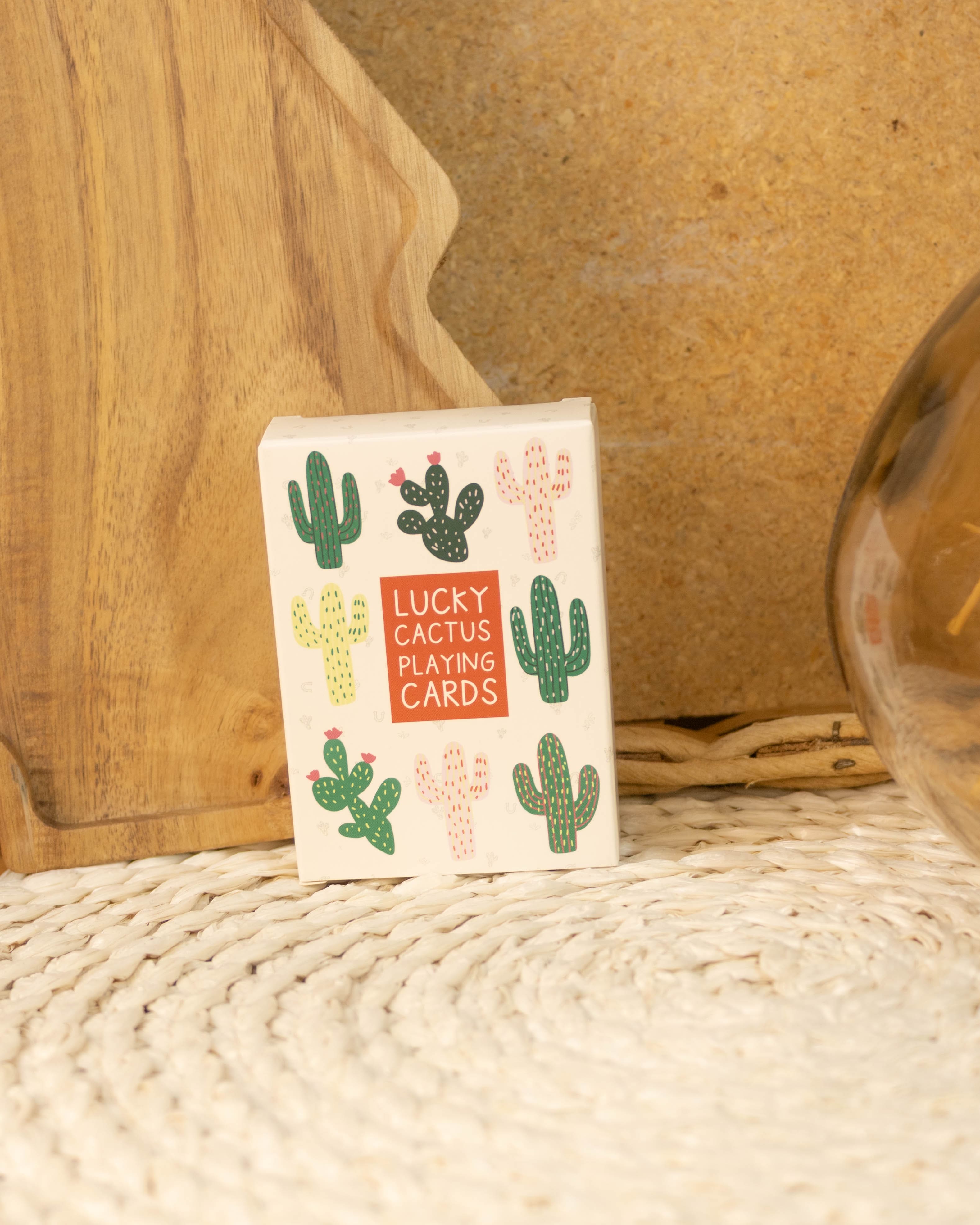 Kick your card games up a notch with our Lucky Cactus Playing Cards. Each card features hand-drawn, charming cactus designs, bringing a touch of southwestern flair and desert vibes to your game nights. Whether you're shuffling, dealing, or just showing off your hand, these cards are sure to add a little extra luck and style to every round. Perfect for cactus lovers and anyone who enjoys a fun, unique twist on classic card games. • Standard 52 card deck • Size: Cards - 2.5×3.5"; Box - 3×3.6×1"