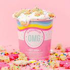 Get ready for the ultimate duo... a fun-filled party in your mouth inspired by her favorite childhood cookie...circus animal crackers! We took a fun twist on the cookie and created a yummy sugar cookie edible cookie dough! It's our Party Animal OMG! aka Ooey Marshmallow Goodness! Party Animal is our classic OMG, pink frosting, sugar cookie dough, and sprinkles all mixed to perfection! (animal cracker not included)