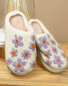 Step into comfort and charm with these Flowers House Slippers. Featuring a playful blend of purple and orange flower designs, these closed-toed flippers keep your feet cozy while adding a fun pop of color to your loungewear. Perfect for relaxing at home or casual wear, they combine adorable style with everyday practicality. Treat your feet to softness and delightful flair all day long.