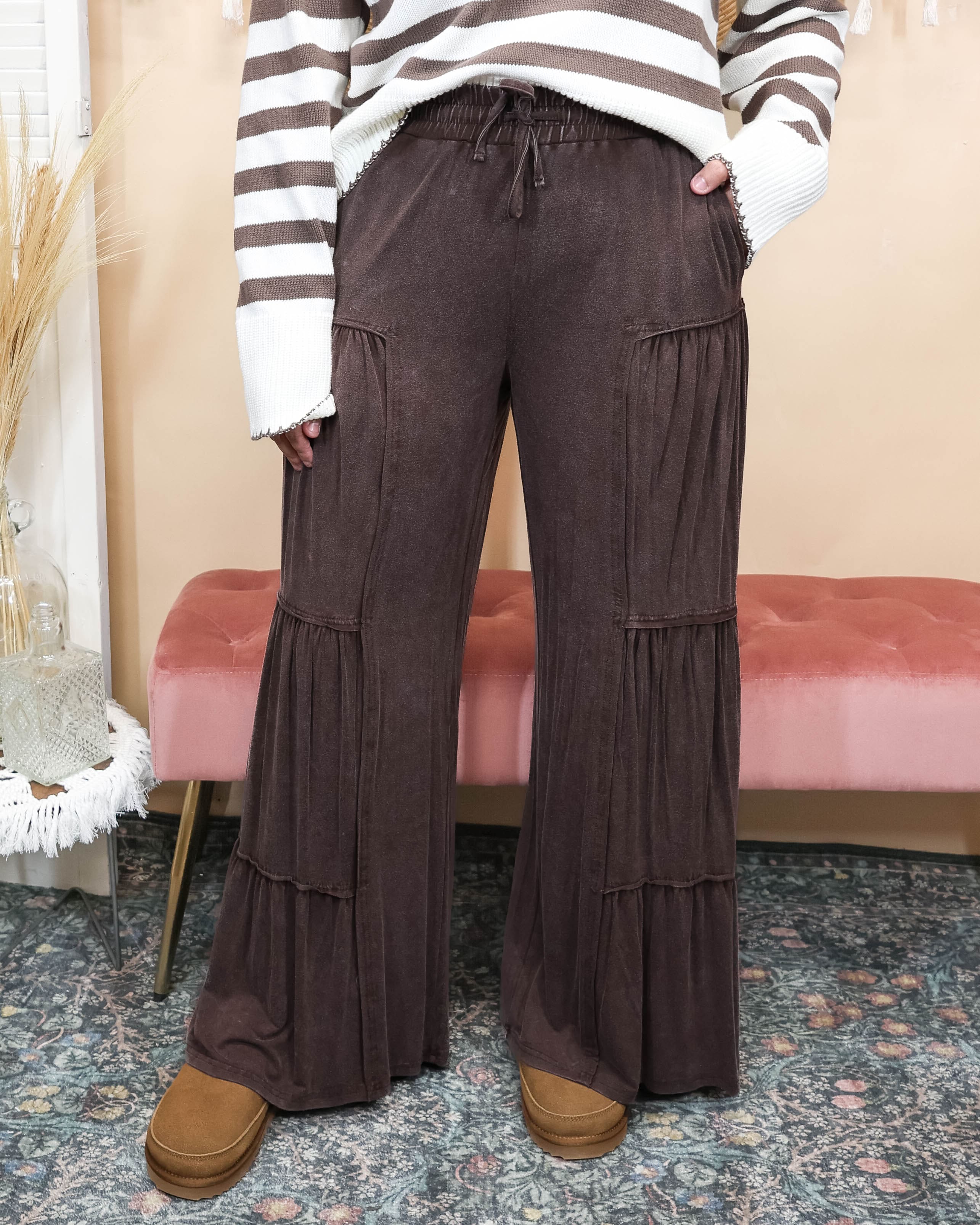 Effortlessly transition from day to night in these Make My Way Pants. Featuring charming ruffles along the sides, this brown style delivers casual comfort without compromise. The lightweight fabric moves with you, making it perfect for lounging, running errands, or weekend adventures. Slip them on and feel the difference—pure comfort meets laid-back style.