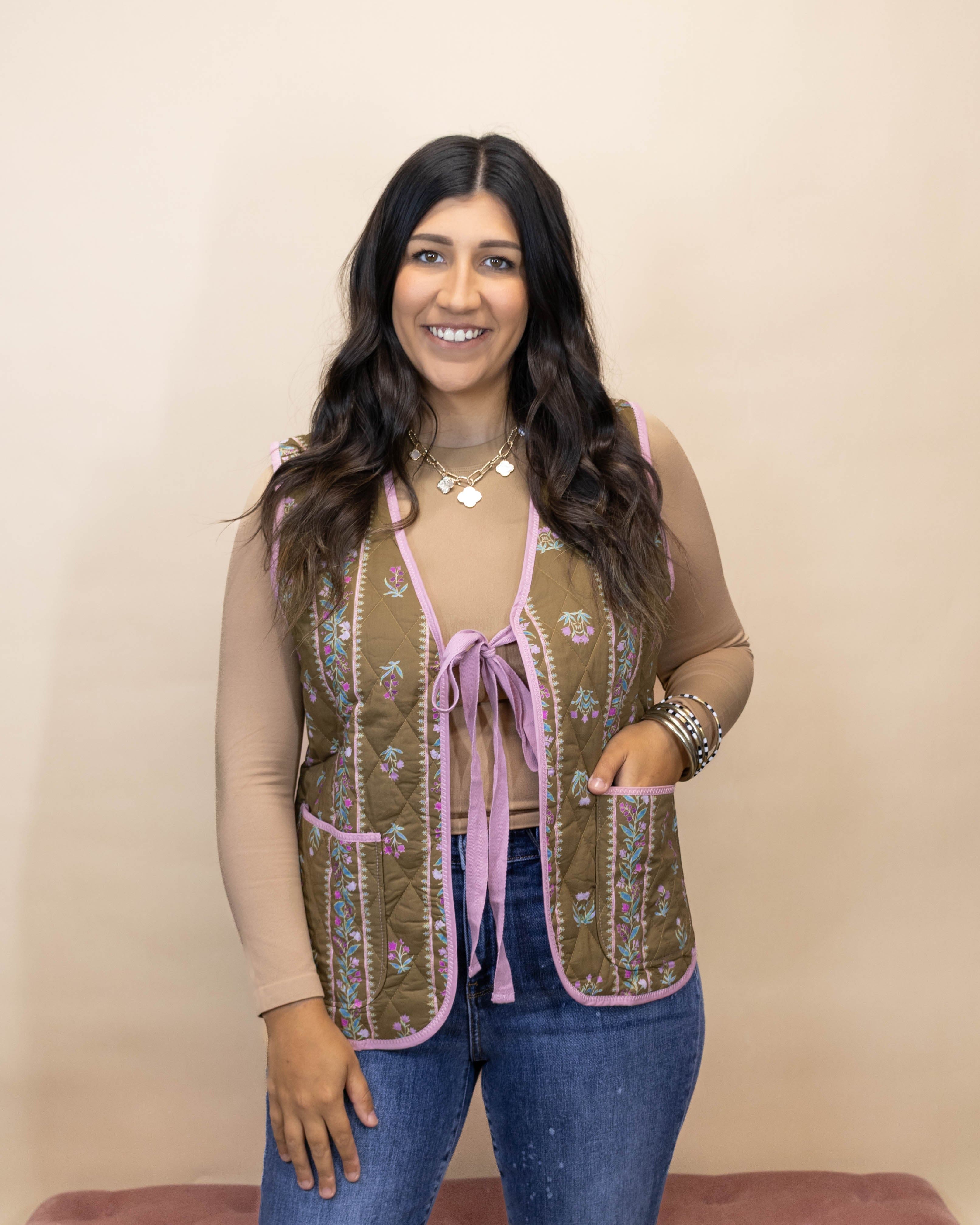 Nantucket Blooms Navy Floral Quilted Tote Bag
