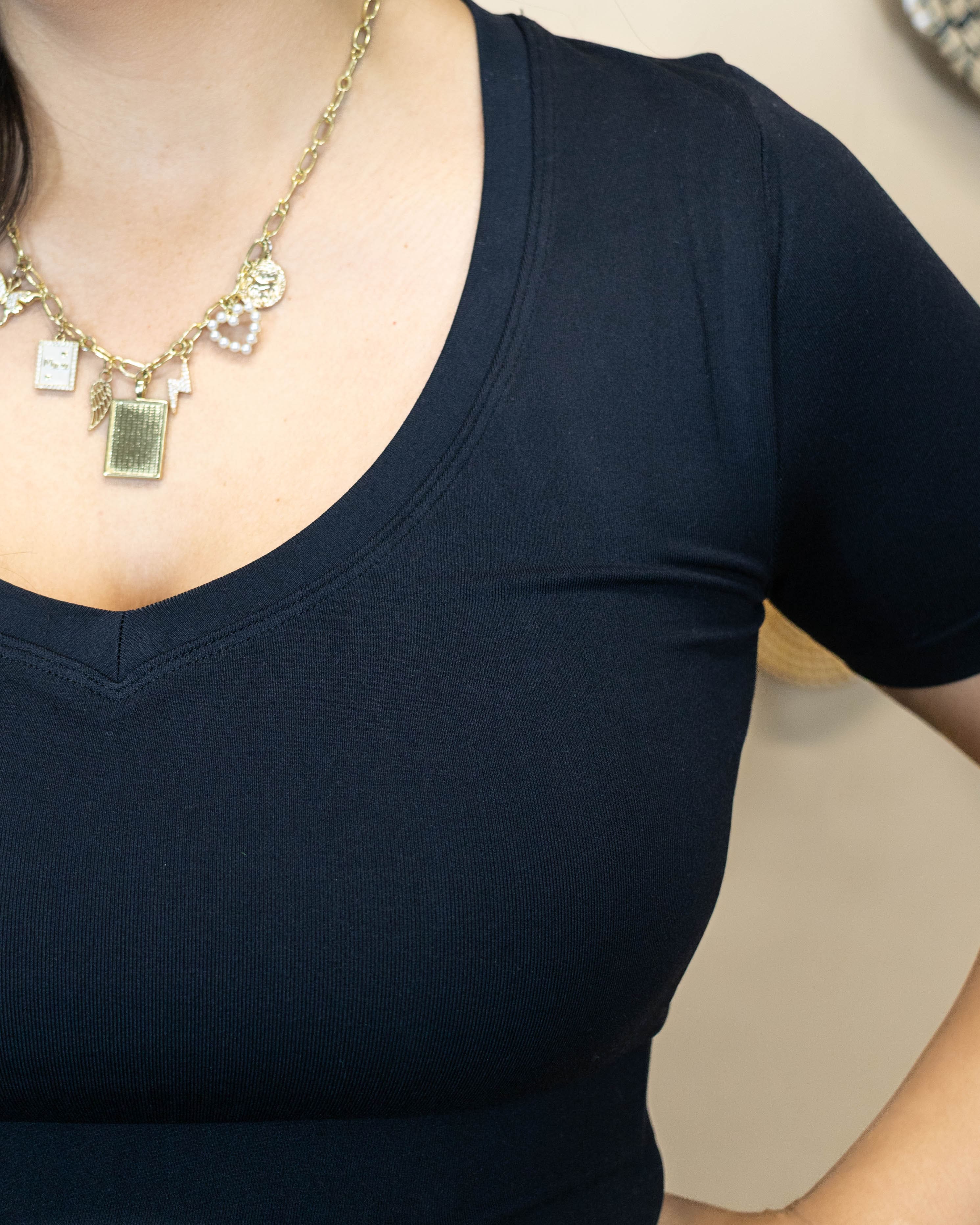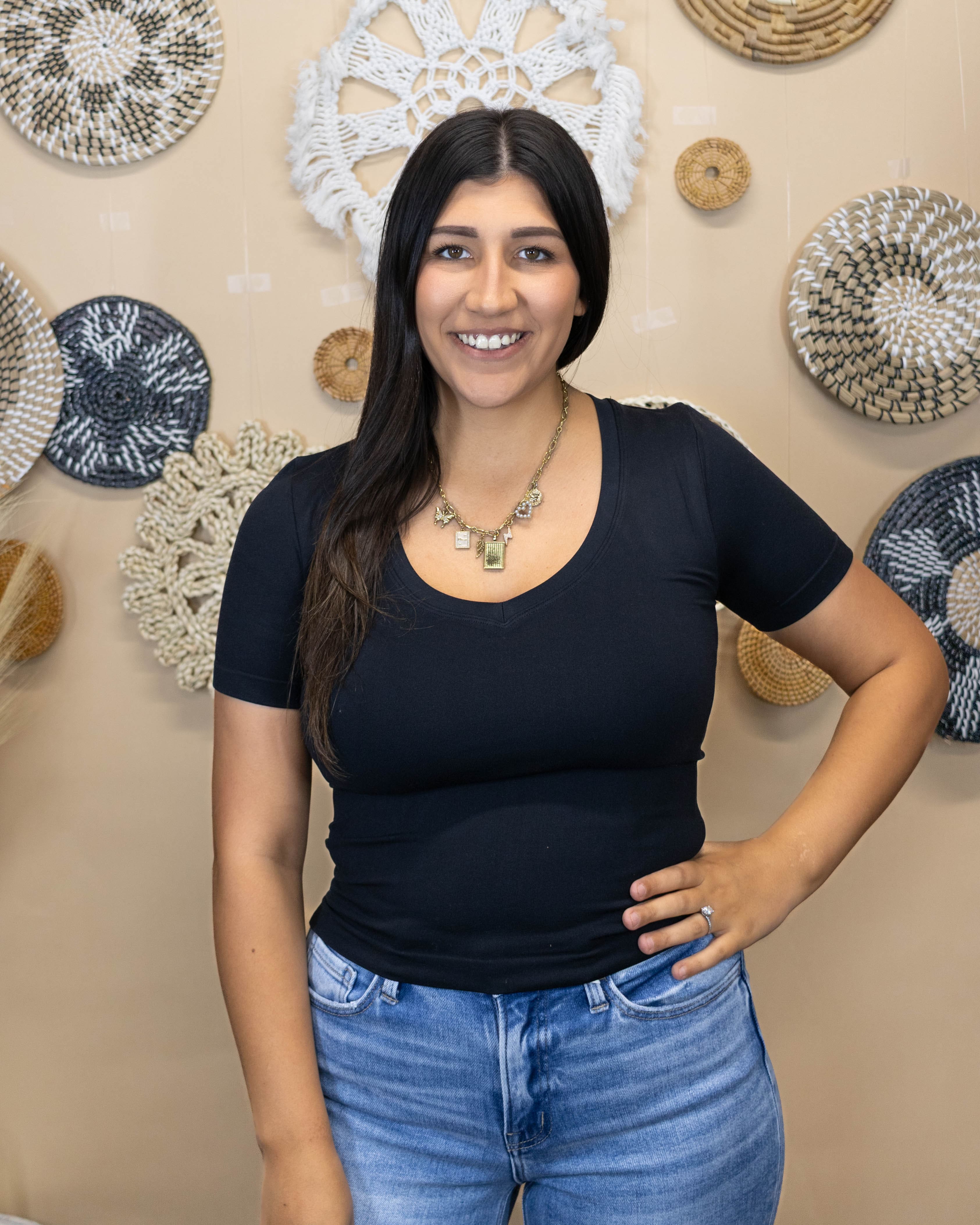 V-Neck Basic Short Sleeve Tee- Black