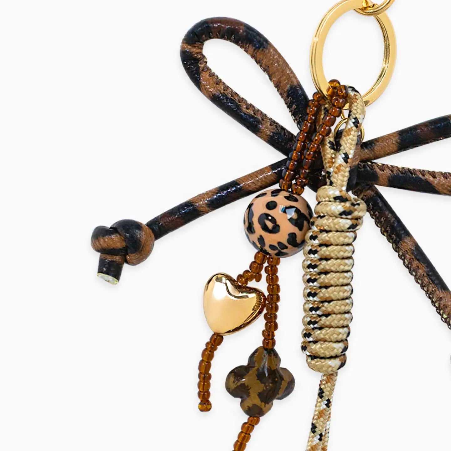 This bag charm features knotted rope loops, a statement bow, and dangling mixed-shape accents! Add it to your purse for a fun look or attach it to your keys for a stylish way to keep up with them!