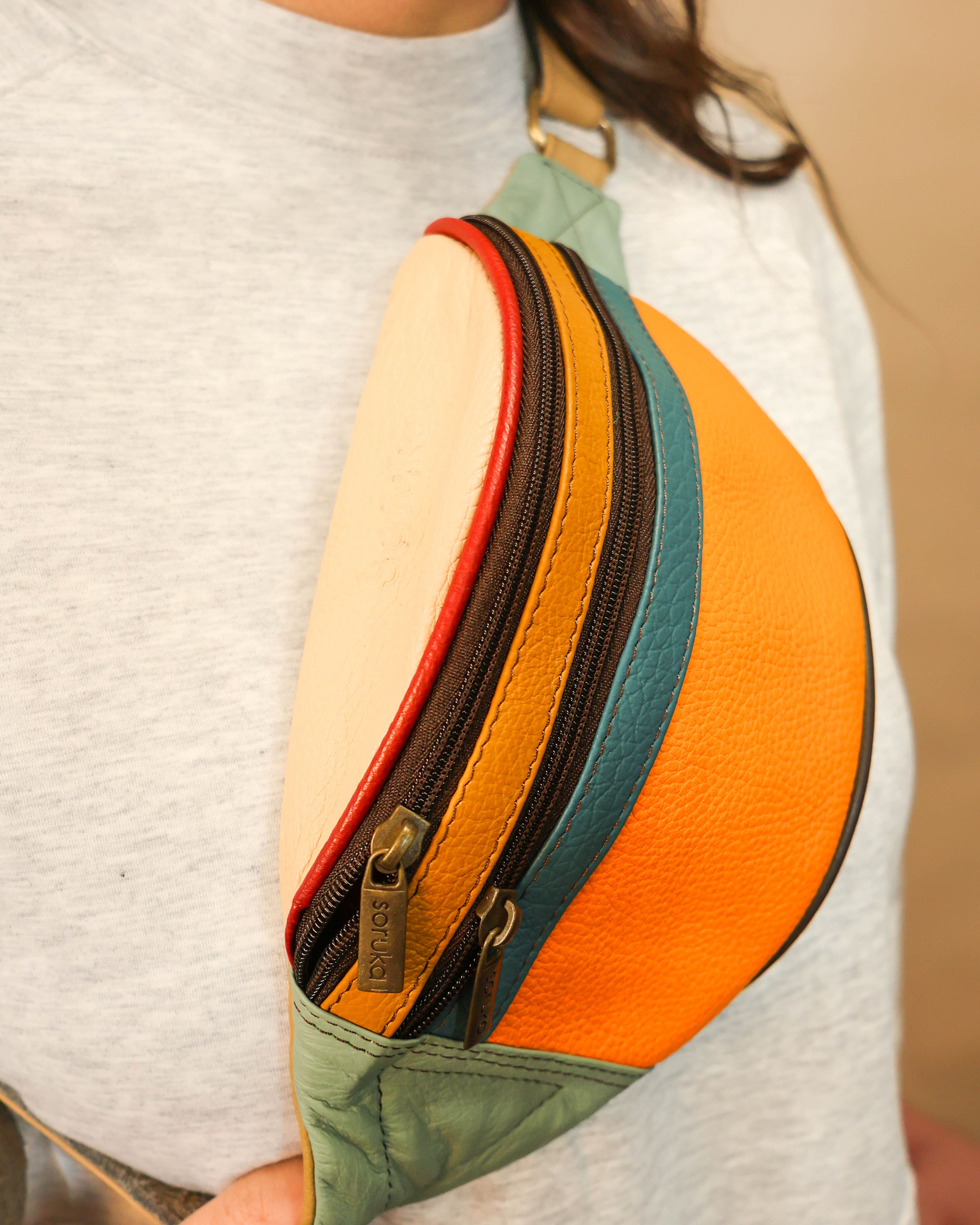 Carry your essentials in style with this one-of-a-kind handmade leather belt bag. Featuring two zippered compartments, it's the perfect travel companion for keeping your valuables organized and within reach. The bright orange leather adds a pop of color to any outfit, while the adjustable belt design keeps your hands free for adventure. Crafted by hand, each piece is uniquely yours—no two are exactly alike. Whether you're exploring a new city or running errands around town, this versatile bag keeps up with your on-the-go lifestyle.