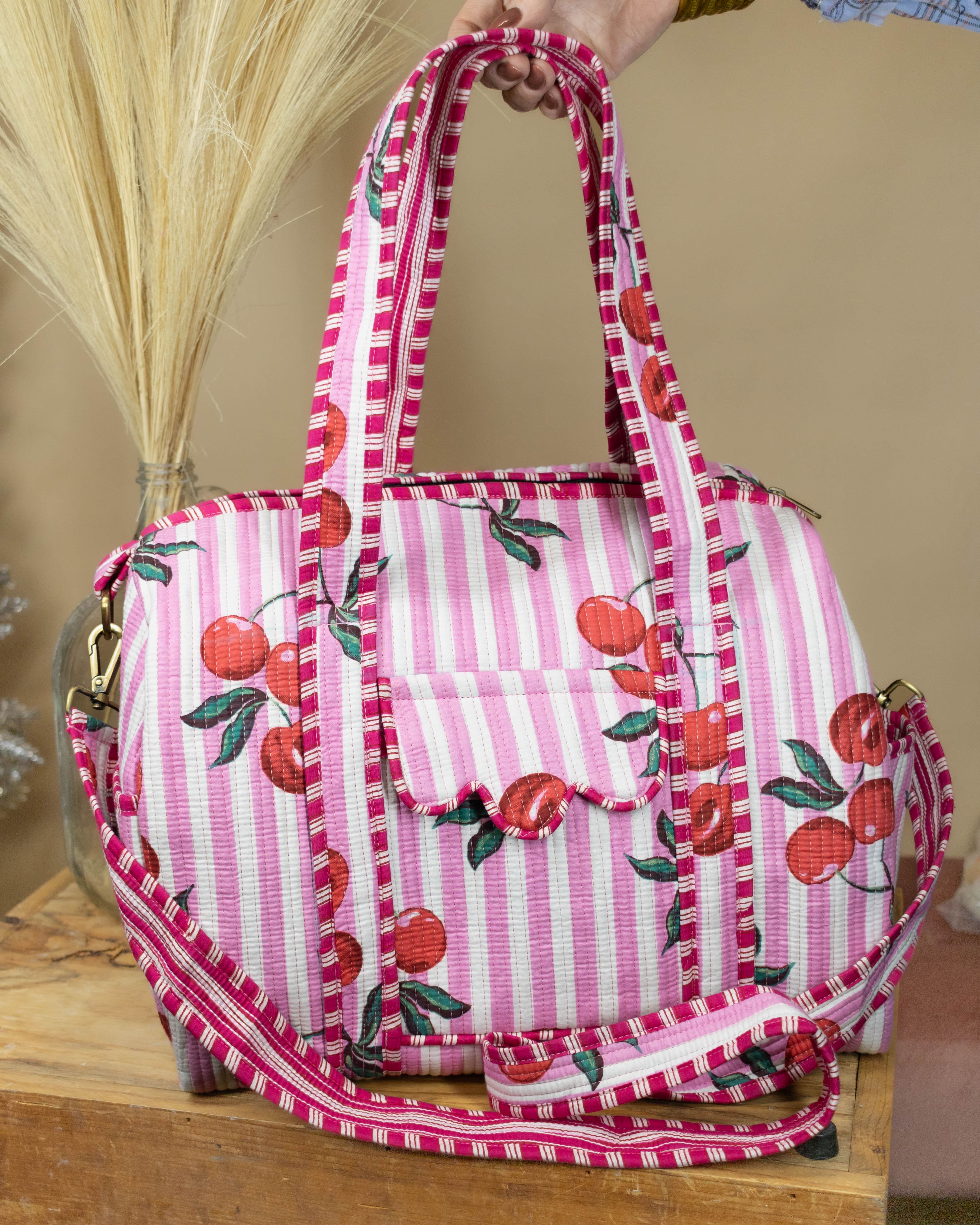 Palmer Pink Striped Cherry Duffle Bag