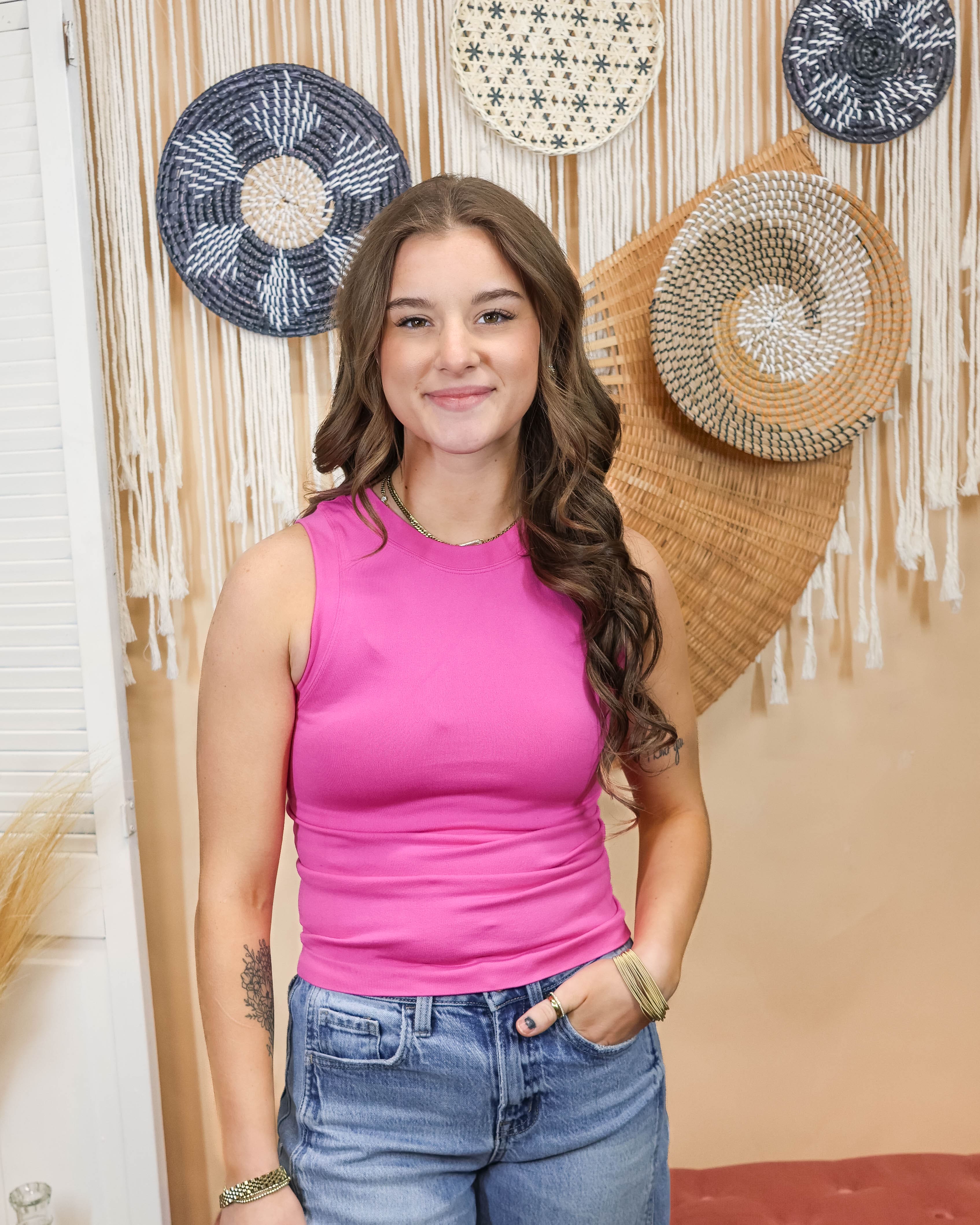 We have a cropped version of this tank that has been a best seller in store for a while now, but many of you ladies wanted the same great fabric and wide straps with a little more length and we are so excited that it is finally here! This will be great under tops, worn with skirts, shorts, etc. They are a great smooth and stretchy material that we LOVE because of how versatile they are and how great they are to layer with. The wide straps are really nice to hide bra straps, and the length is perfect for someone who doesn't want to show too much skin!