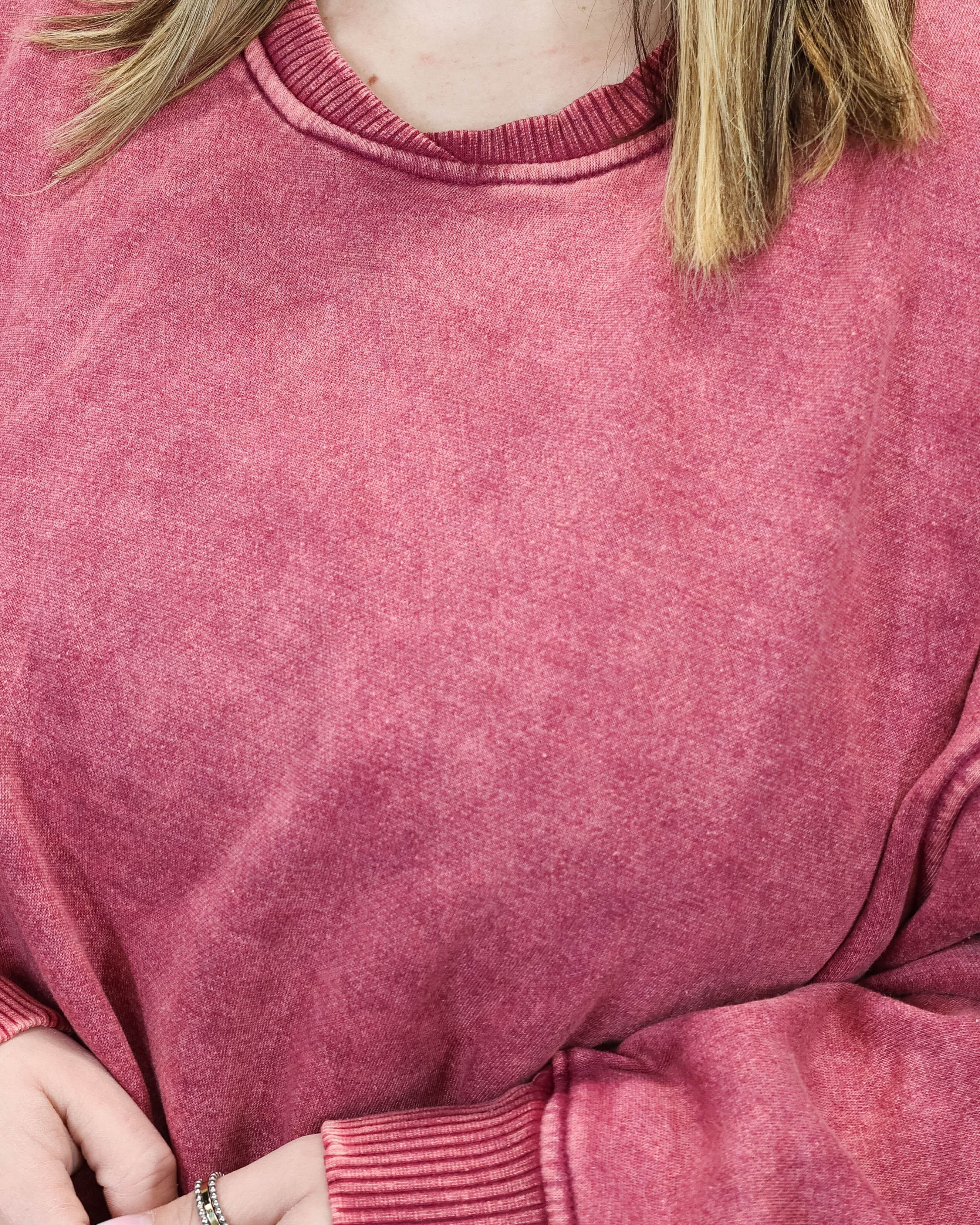 Embrace effortless style with this acid wash pink sweatshirt, designed for those who crave vintage-inspired comfort with modern appeal. The ribbed neckline and reinforced ribbing along the bottom create a polished, structured silhouette that keeps its shape wash after wash. Soft and cozy, it's the perfect layering piece for casual days or standalone statement wear. Whether you're running errands or relaxing at home, this sweatshirt delivers the perfect blend of nostalgia and contemporary edge.