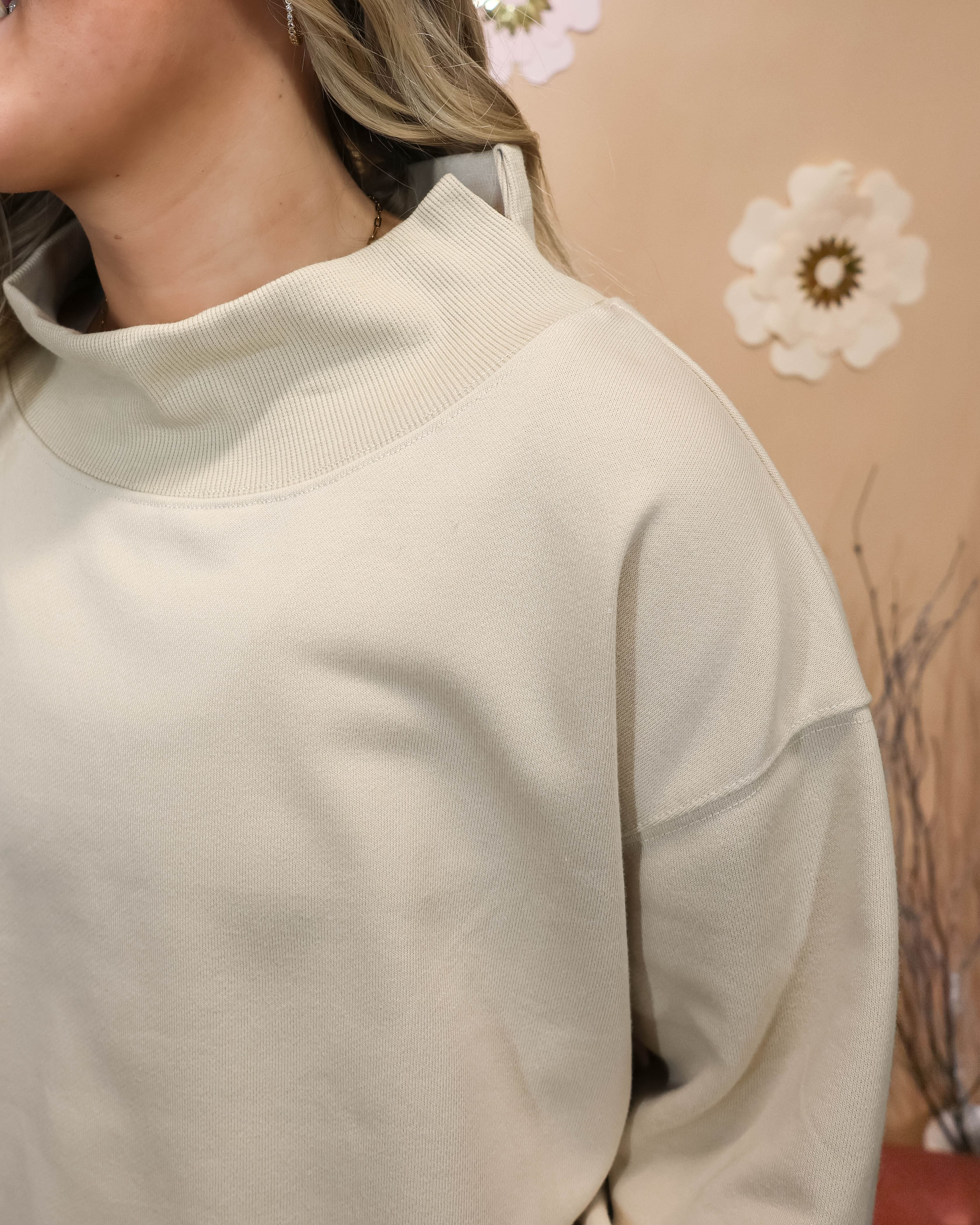 Slip into effortless comfort with this casual pullover sweatshirt. Featuring a mock neck design and soft, cozy fabric in a warm tan tone, it's the perfect layering piece for relaxed days at home or out and about. The relaxed fit makes it ideal for pairing with your favorite jeans or joggers. A versatile staple that bridges the gap between comfort and style.