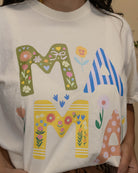 The Floral Mama Graphic Tee in cream offers cozy comfort with a vibrant mama graphic adorned with bows, florals, and striped patterns. Pops of color bring this tee to life, making it a perfect blend of style and sentiment for everyday wear.