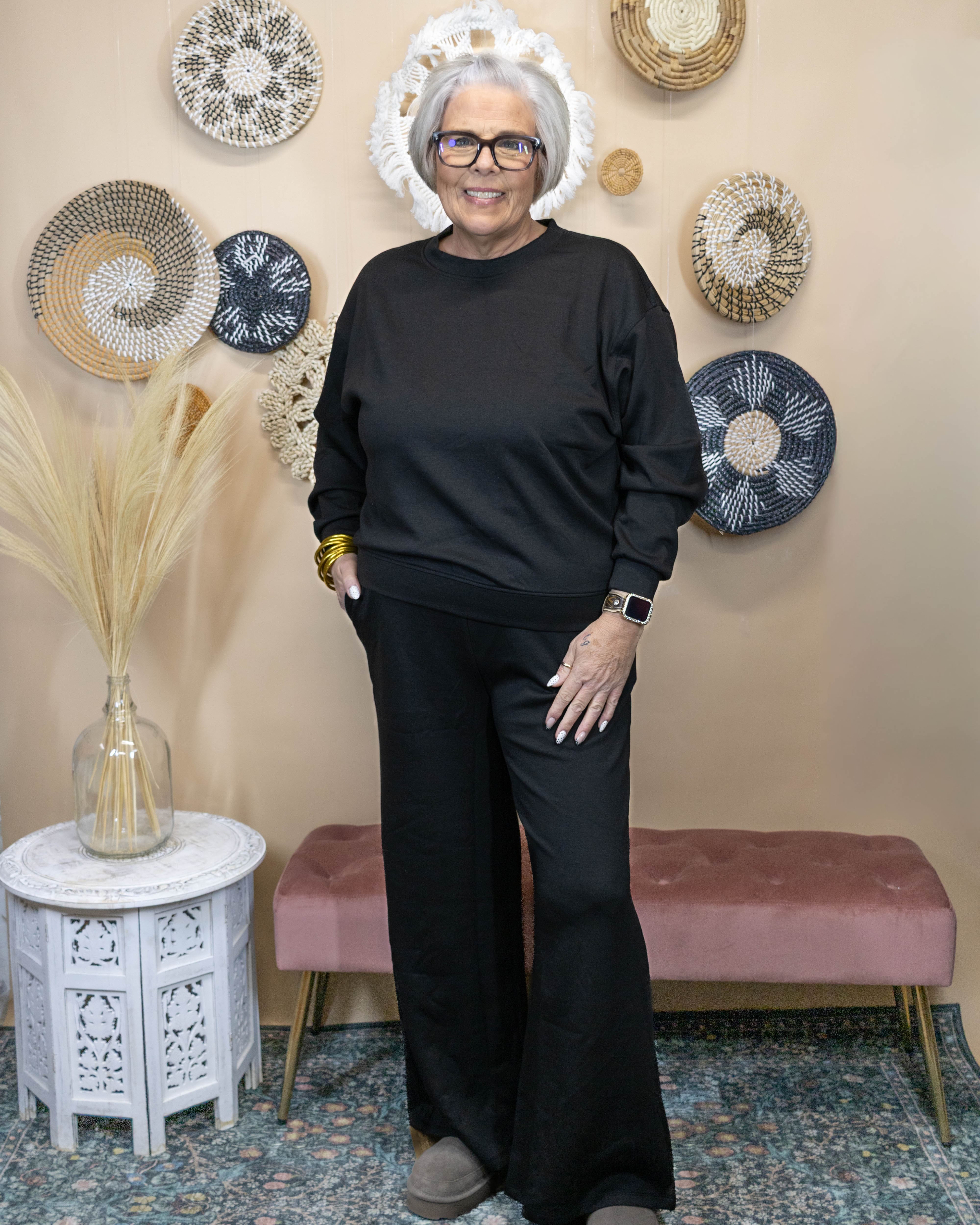 Elevate your casual wardrobe with this sleek black sweat set. Designed for comfort without compromising on style, the matching top and bottom create an effortlessly put-together look perfect for lounging, running errands, or casual outings. The soft, breathable fabric moves with you throughout your day, while the timeless black color pairs seamlessly with any accessory. Whether you're keeping it cozy at home or stepping out in confidence, this versatile set delivers the comfort and aesthetic you've been looking for.