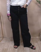 Discover timeless style with the In The Know Pant, a classic straight black jean featuring subtle button detailing for added flair. Designed with functional pockets, these jeans combine everyday practicality with a sleek, versatile look perfect for any occasion.