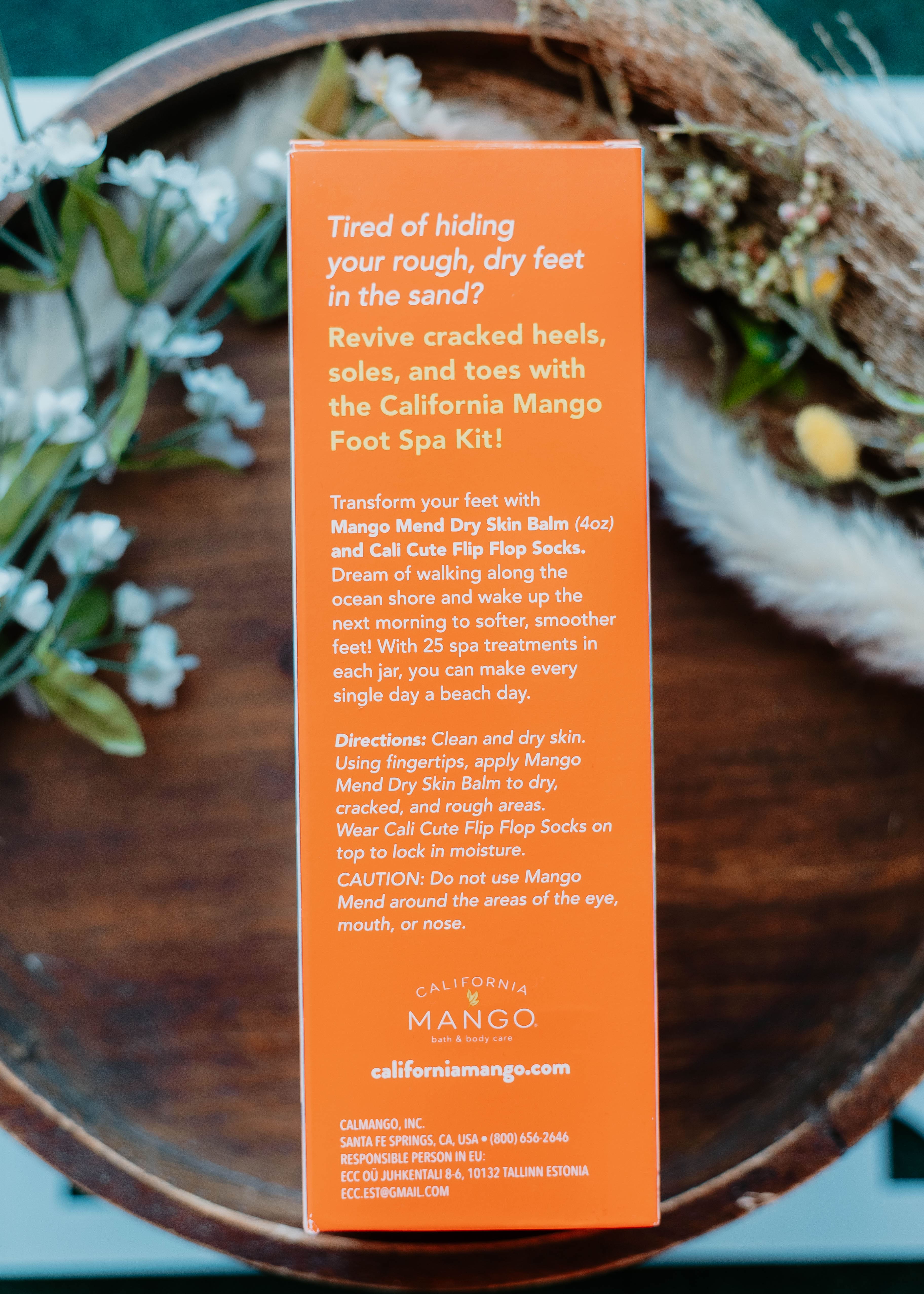 Don’t spend summer hiding your feet in the sand! If your toes, heels, and soles are looking rough and cracked, you need the ultimate dry skin balm, Mango Mend, to get your feet sandal-ready! This restorative treatment relieves even your roughest, driest patches overnight with a botanical blend of sunflower, safflower, aloe, and jojoba. Slip on the Cali Cute Flip Flop Socks on top to lock in the mango-moisture and dream of walking along warm sands and cool waters. Wake up to softer, beautiful feet!