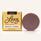 Hair repair conditioner bar with Jojoba + Argan oil. Our Loxy RELAX solid conditioner bar smooths and adds moisture for dry, frizzy, curly or damaged/highlighted hair. Add some shine and hydration to those locks!