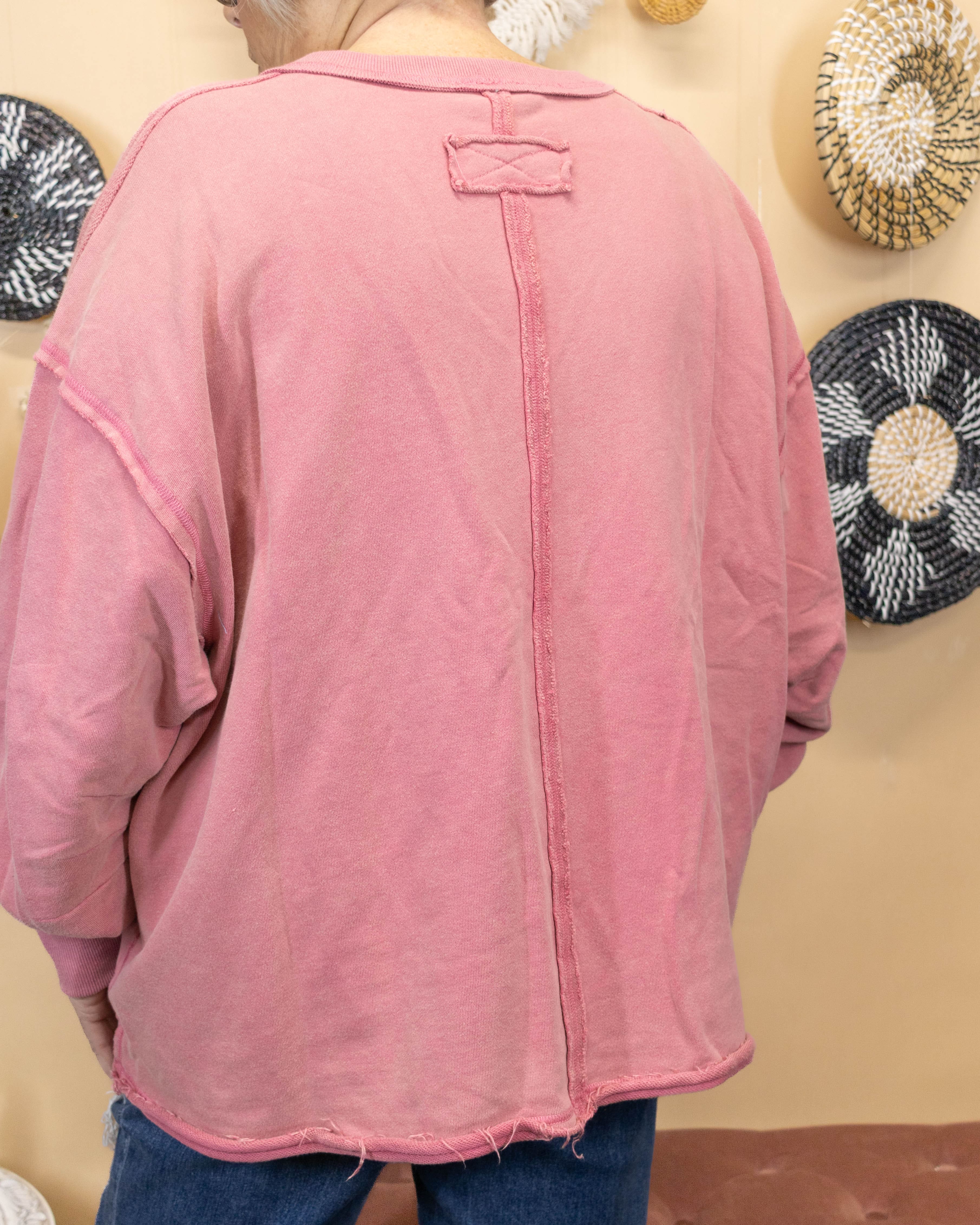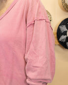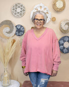 Slip into effortless comfort with this rose-hued sweatshirt that combines style with everyday wearability. The V-neck design and long sleeves offer a flattering silhouette, while the lightweight fabric keeps you cozy without the bulk. Perfect for layering or wearing solo, this piece delivers that coveted cute-and-comfortable vibe you'll reach for again and again. Soft enough to feel like a second skin, durable enough to become your go-to favorite.