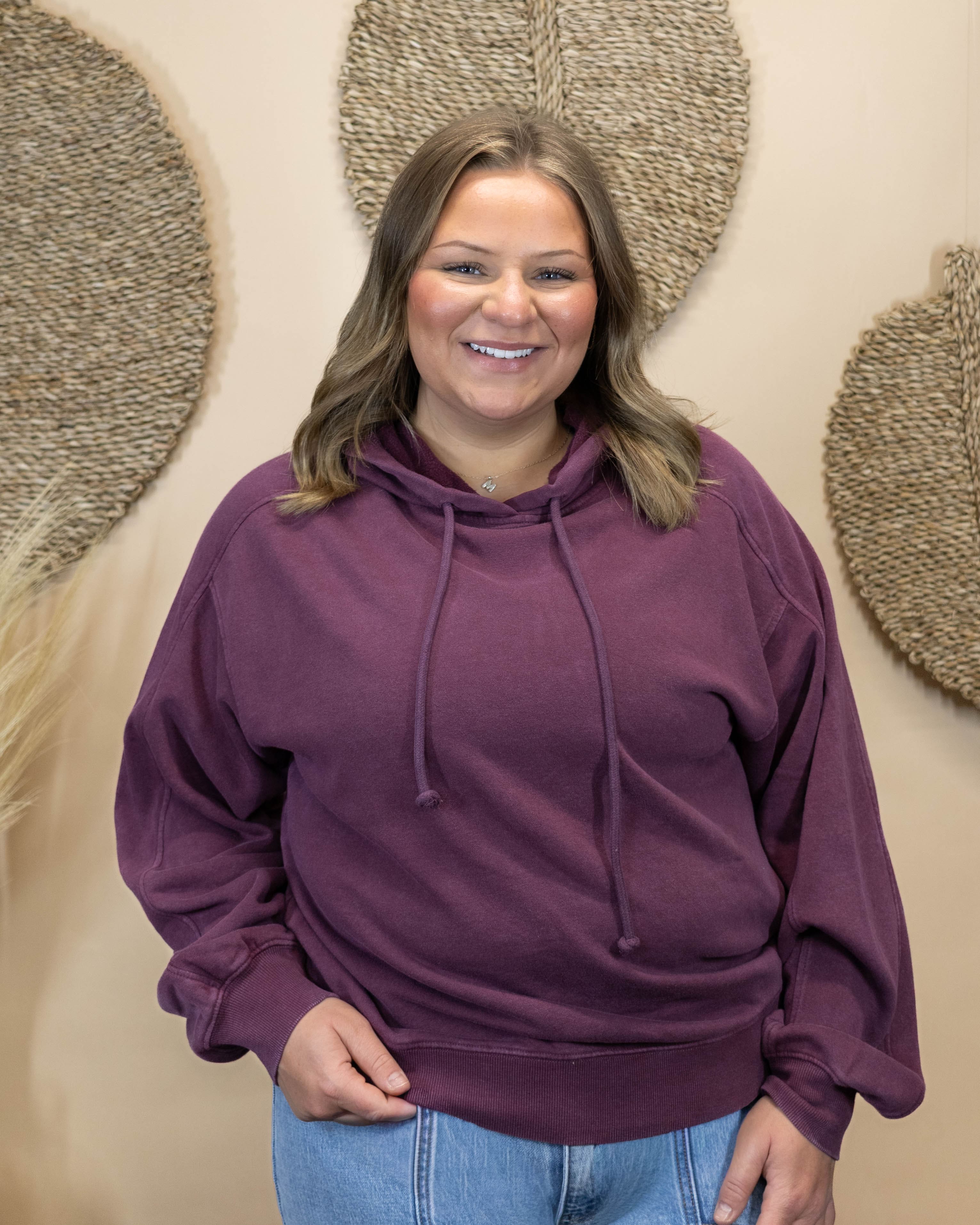 Embrace effortless style with the Don't You Go Hooded Top, your new go-to for laid-back comfort. Crafted in a rich purple hue with relaxed, oversized sleeves, this hoodie wraps you in softness that feels as good as it looks. Perfect for casual days when you want to feel cozy without sacrificing style, it pairs seamlessly with everything in your wardrobe. Whether you're lounging at home or stepping out for errands, this hoodie delivers the comfort and casual vibe you've been craving.