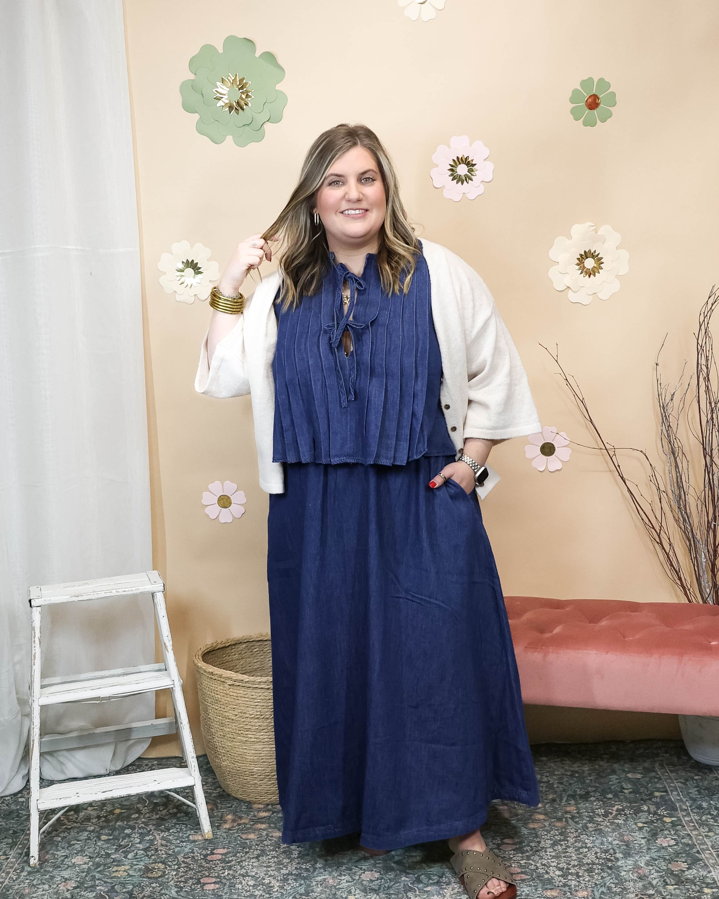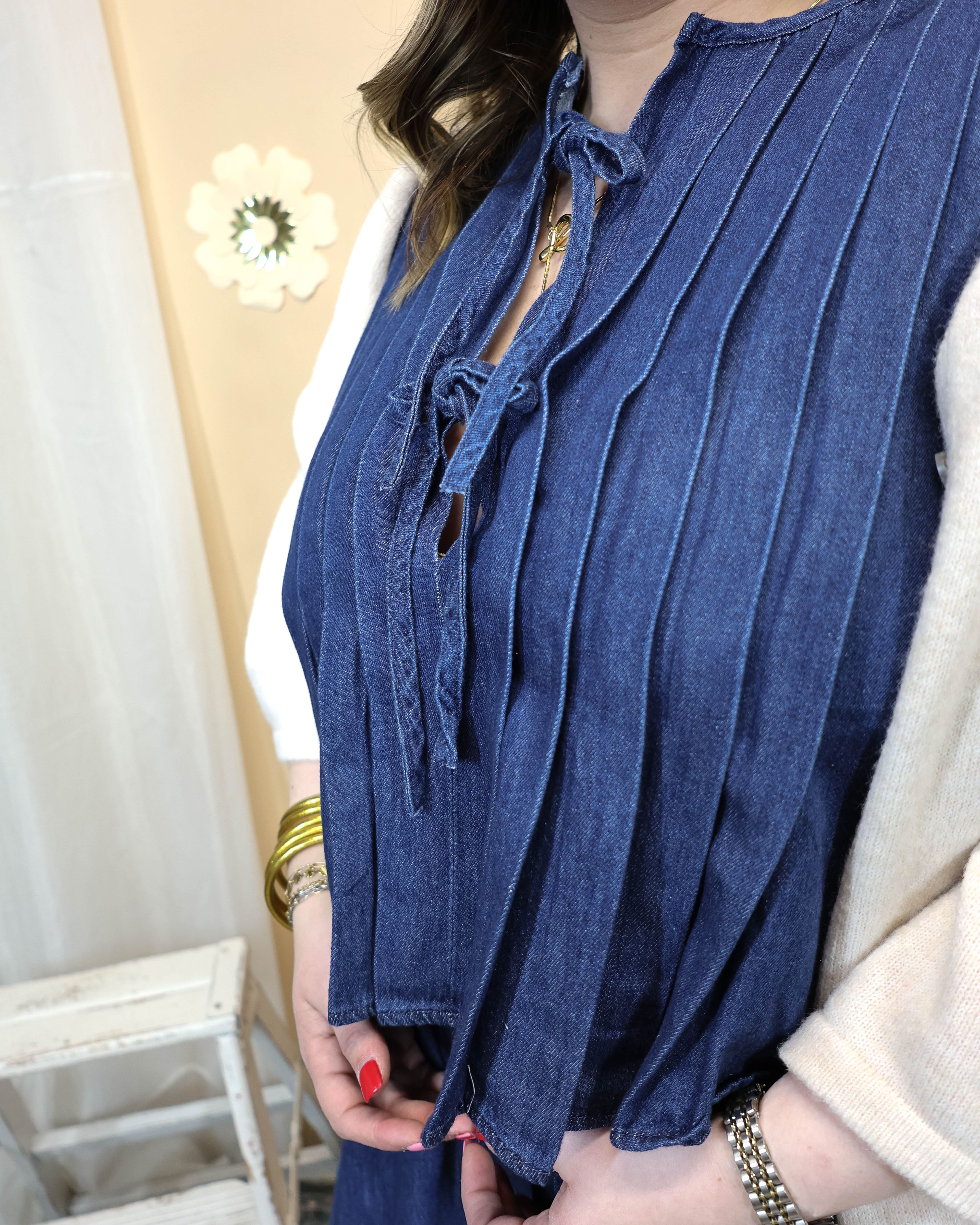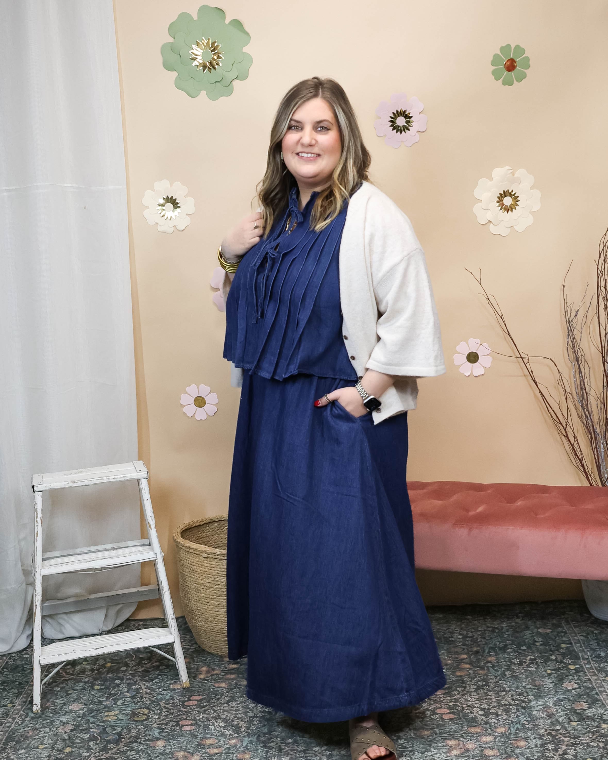 Mix, match, and make it yours. This denim set features a structured top with pleated details that pairs beautifully with a flowy skirt—wear them together for polished elegance or separate them to create endless outfit combinations. Dressy enough for special occasions, versatile enough for everyday styling.