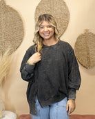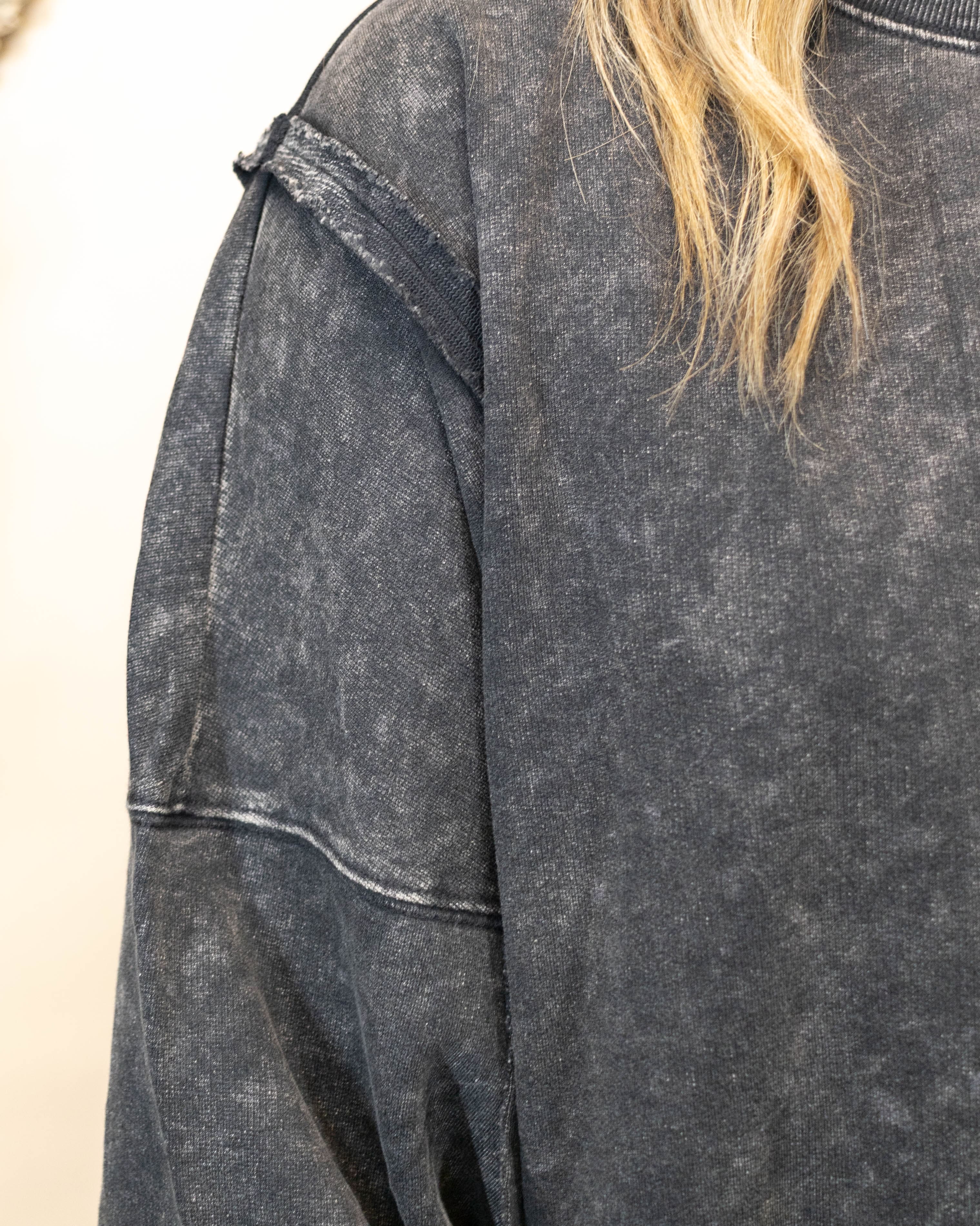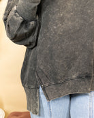 Embrace effortless edge with this black acid wash sweatshirt, designed for those who crave understated attitude. The strategic side slits add movement and visual interest, while generously loose sleeves deliver comfort without compromise. Perfect for layering or wearing solo, this piece transitions seamlessly from casual weekends to laid-back evenings. The vintage-inspired acid wash finish gives it character and depth, making it a versatile staple that pairs with everything in your wardrobe. Elevate your basics with a top that balances style and wearability.
