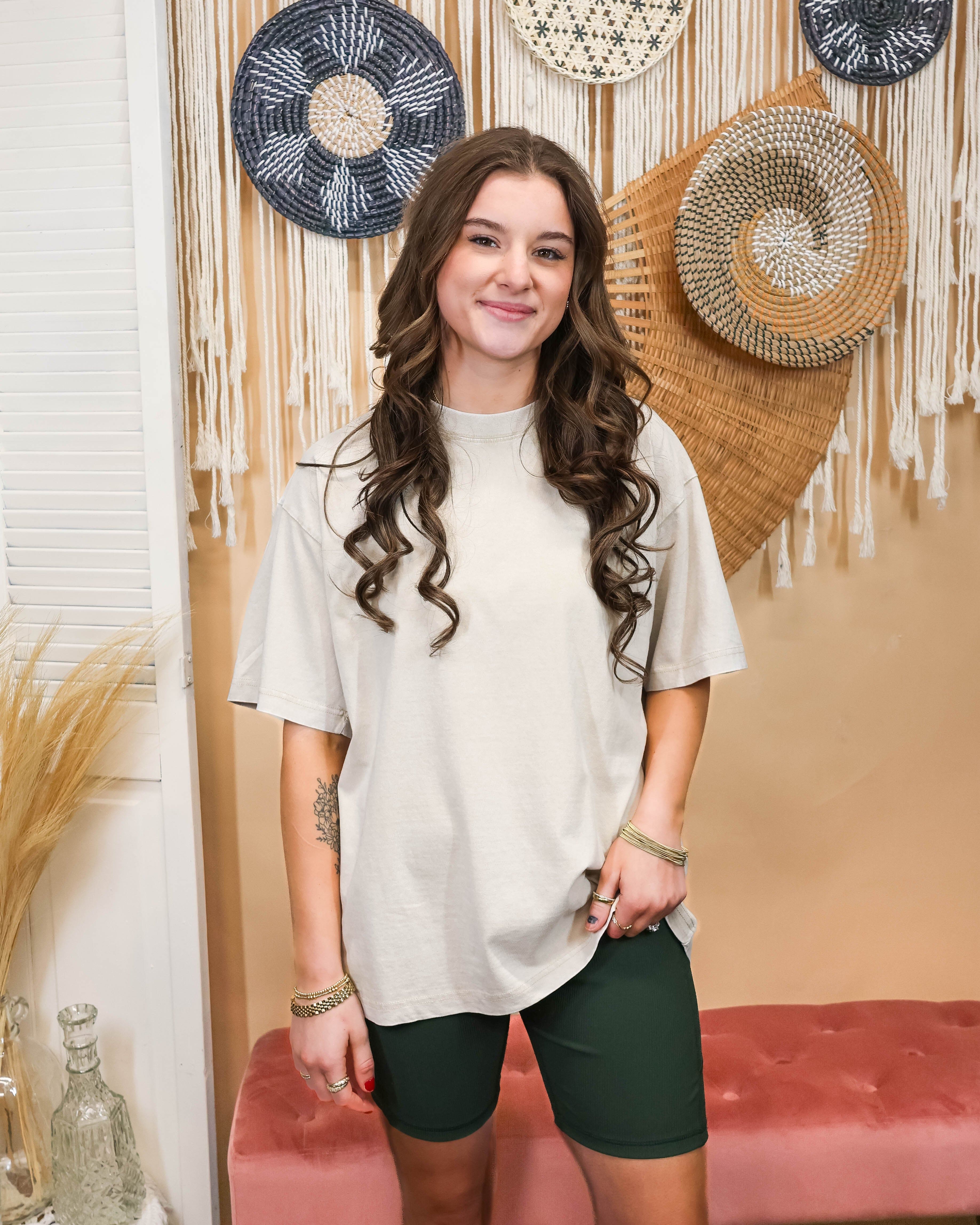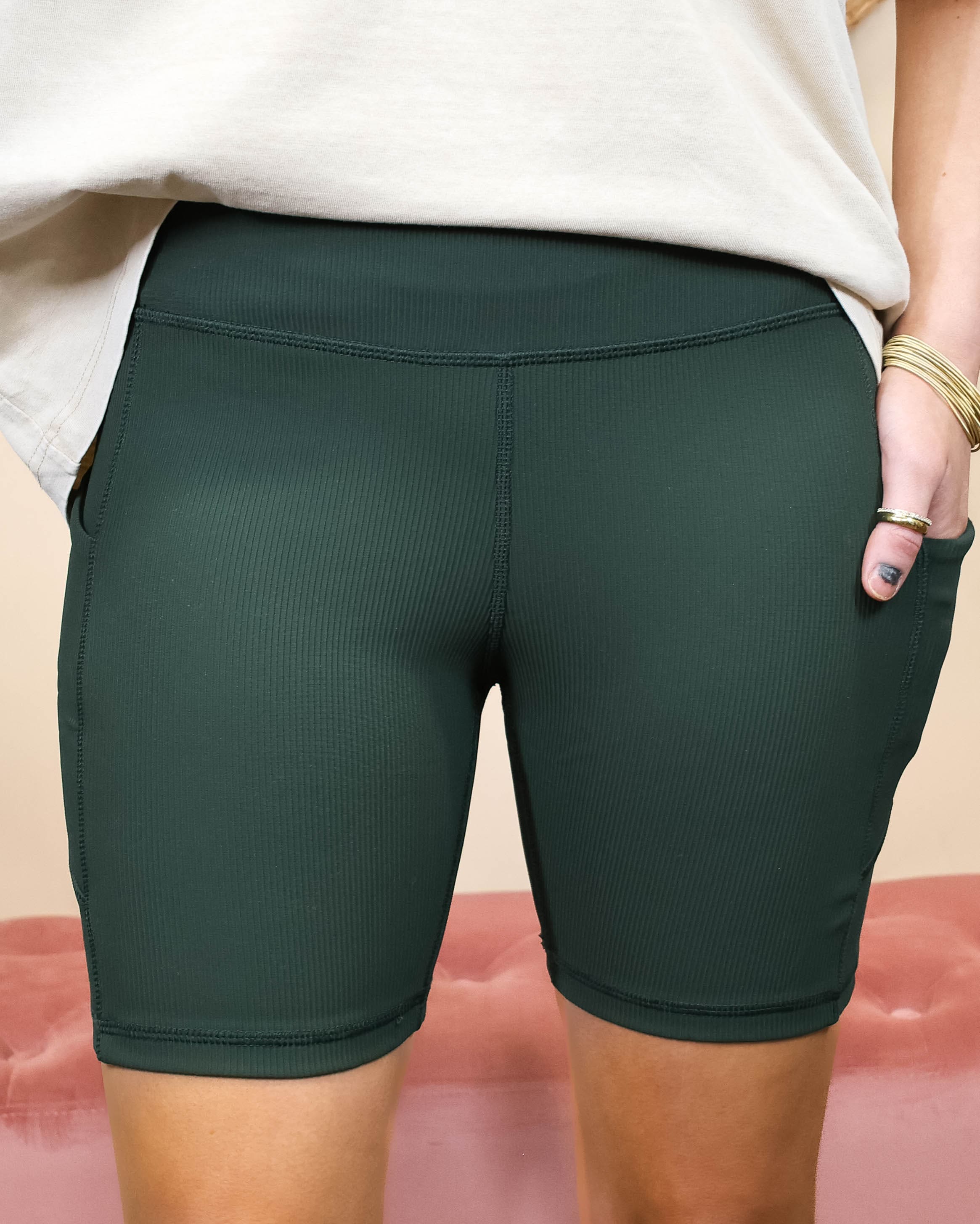 These biker shorts are your new best friend. The ribbed fabric sculpts, while stretchy material lets you move freely, the dreamy seashell shade goes with literally everything, and the pockets add an extra detail to your look!