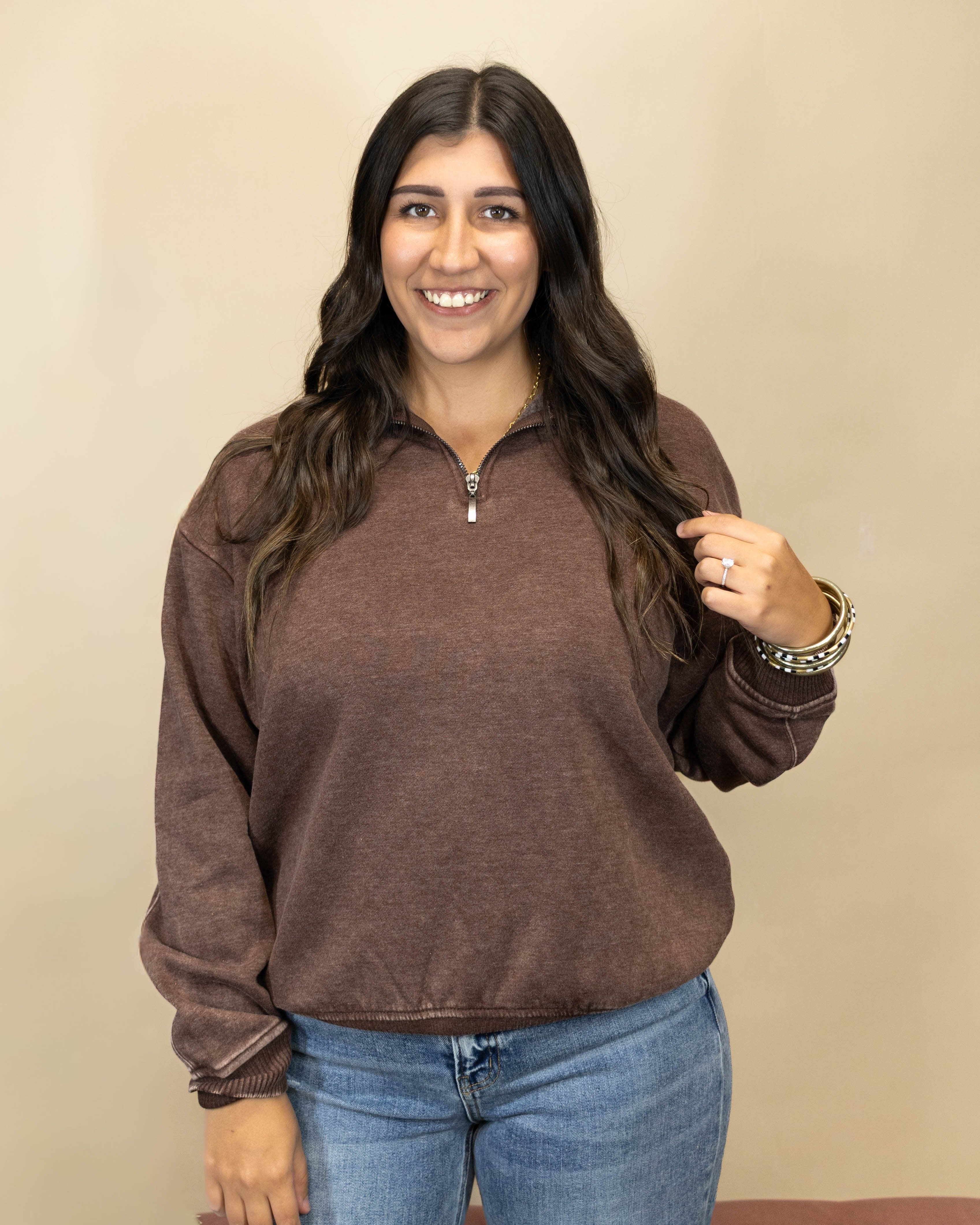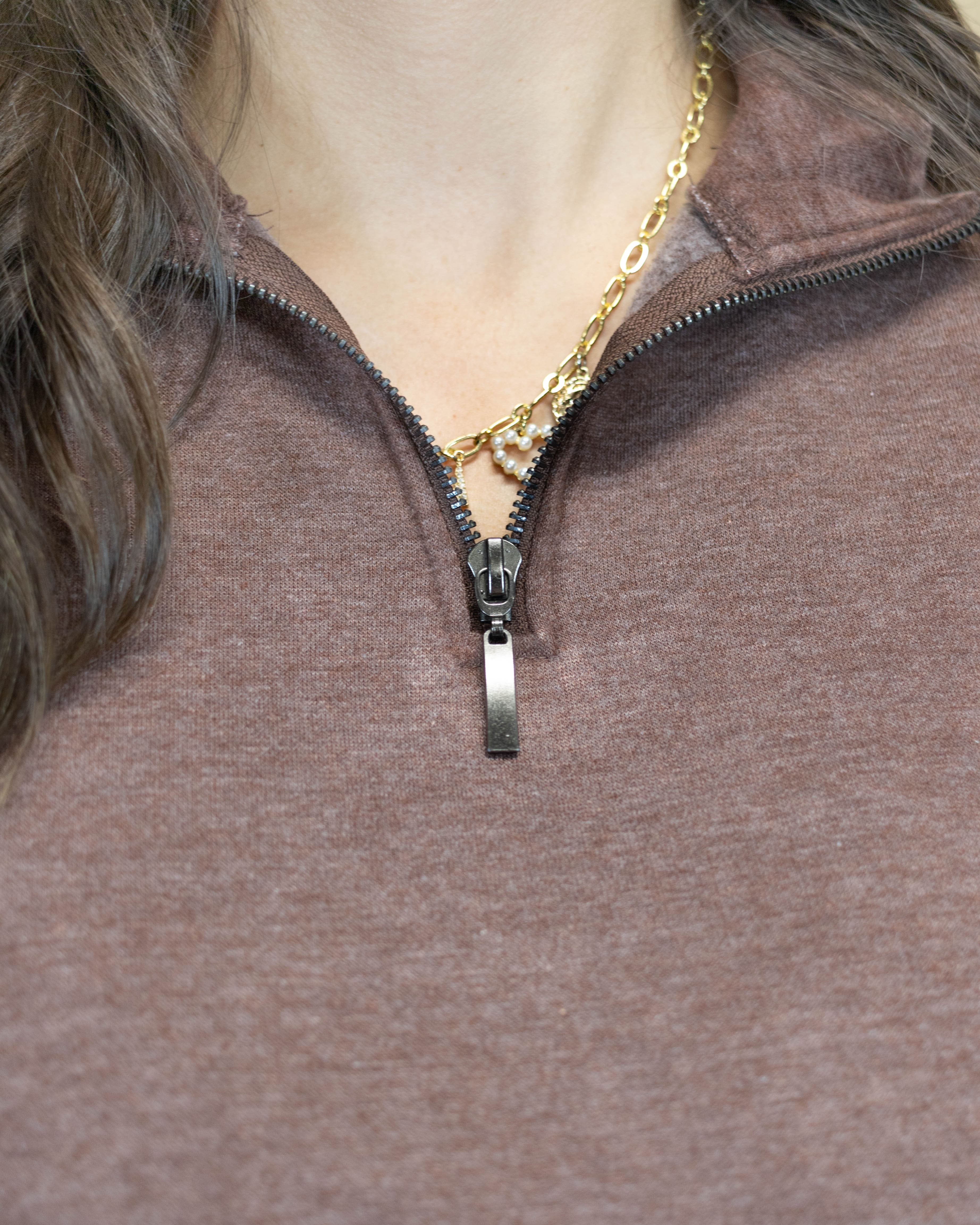 Wrap yourself in comfort with this classic quarter zip pullover in rich mahogany. Crafted from luxuriously fluffy fabric, it delivers softness against your skin while the cozy lined interior adds an extra layer of warmth. Perfect for layering or wearing solo, this timeless piece transitions effortlessly from casual days to relaxed evenings. A wardrobe essential that combines style with undeniable comfort.