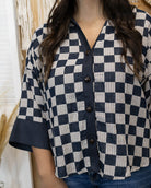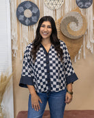 Elevate your everyday style with the Not Your Fate Top, a striking piece that combines classic checkerboard patterns with modern sophistication. The quarter-sleeve design offers versatile layering options, while thoughtfully placed button details along the front add dimension and visual interest. Perfect for those who appreciate subtle design elements that make a statement, this top transitions seamlessly from casual outings to more polished occasions. A wardrobe essential that proves timeless patterns never go out of style.