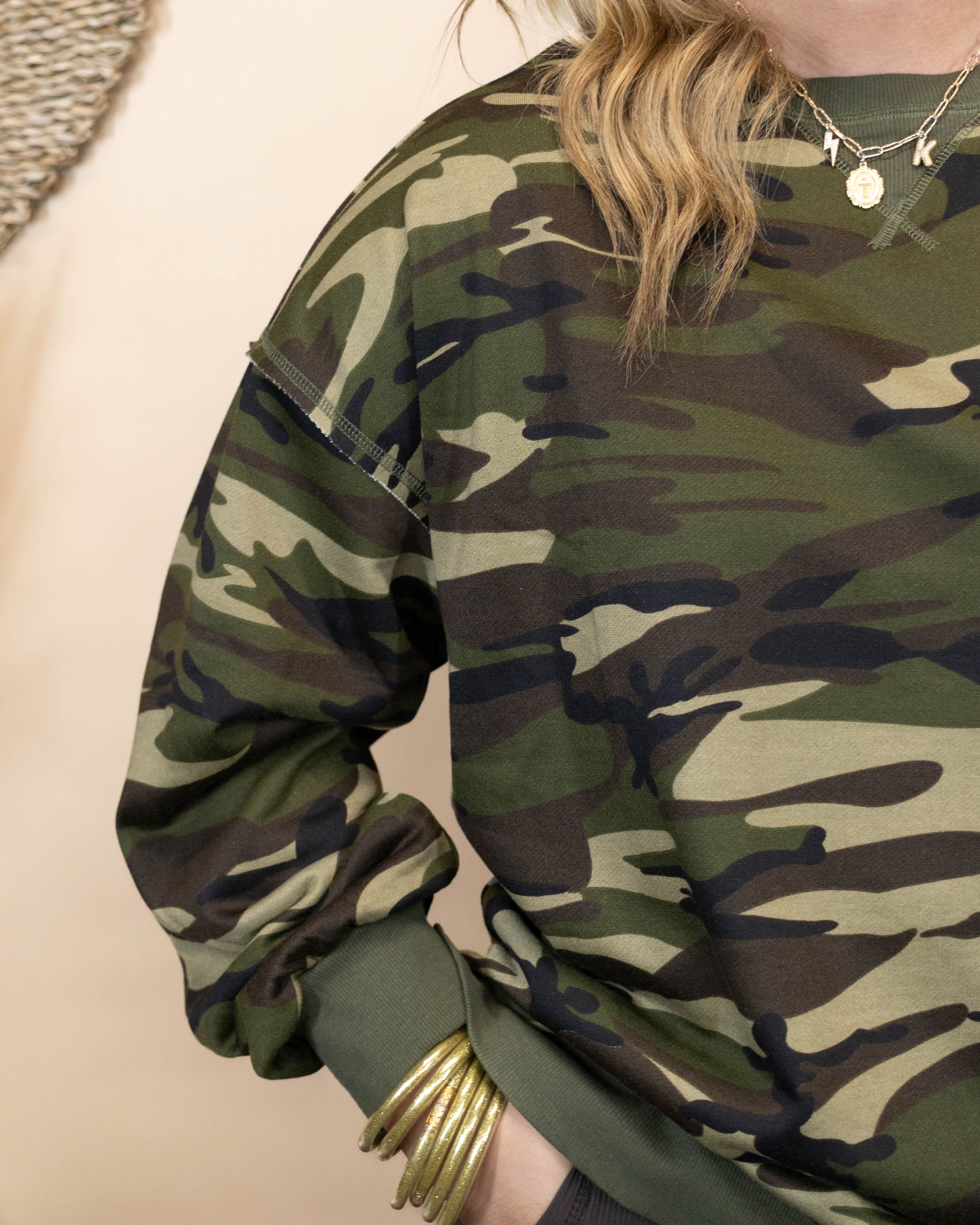 Slip into effortless style with the Put It On Sweatshirt. This lightweight camo piece delivers the perfect balance of cute and cozy, making it your go-to layer for any occasion. Whether you're running errands or relaxing at home, you'll love how comfortable it feels against your skin. The relaxed fit and breathable fabric ensure you stay comfortable all day long without the bulk. A versatile wardrobe essential that proves comfort doesn't have to compromise on style.