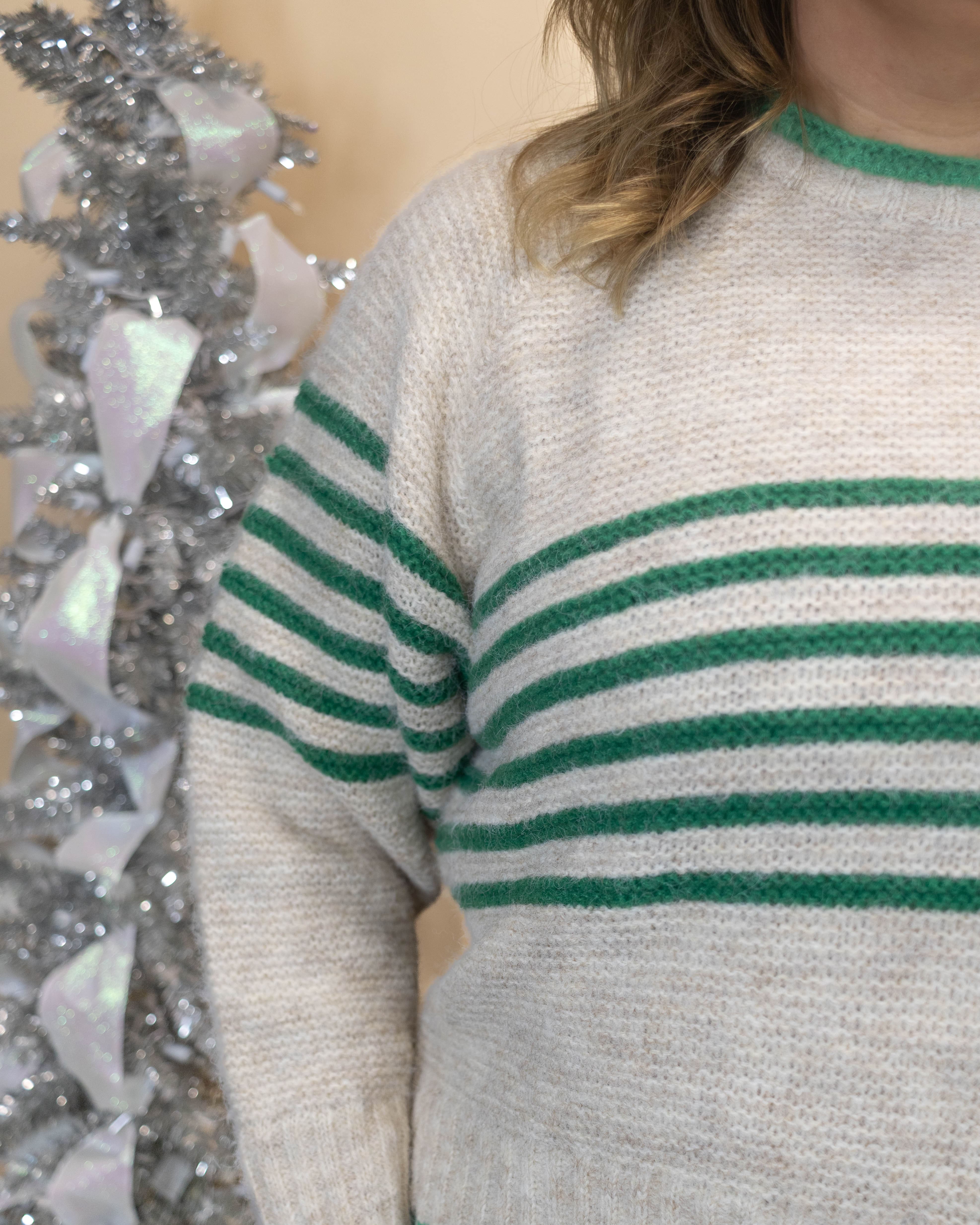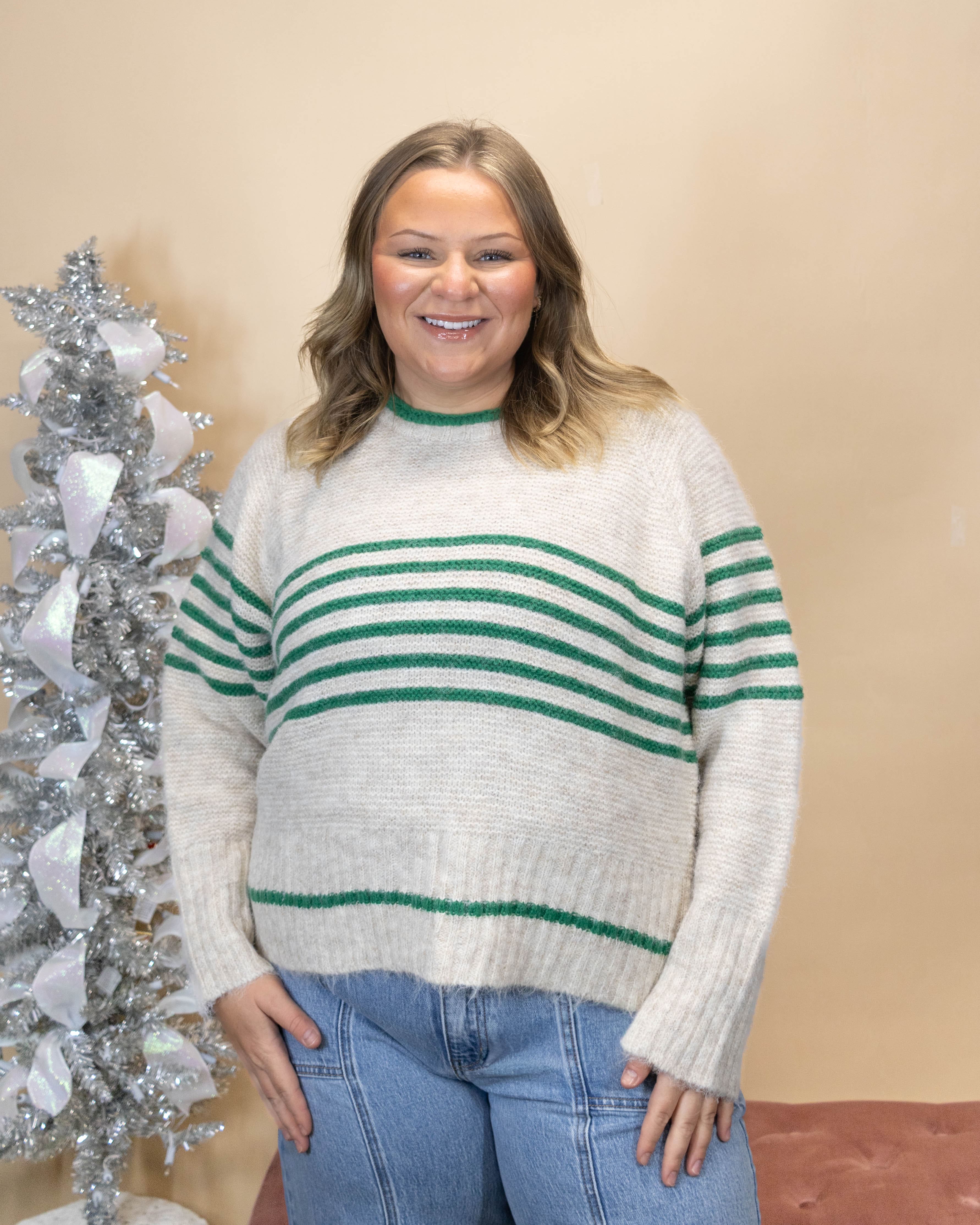 The Real To Love Sweater combines cozy warmth with playful striped greens for a fun, casual look. Perfect for dressing up or down, this versatile sweater keeps you comfortable while adding a splash of color to any outfit. Embrace effortless style and snug comfort all season long.