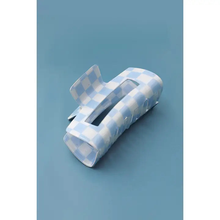 Checkered Claw Clip- Blue