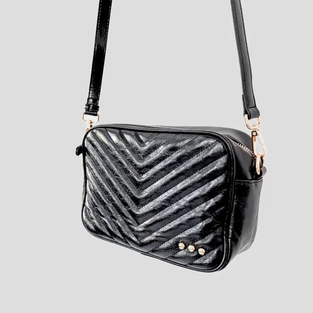 Coco Quilted Camera Crossbody Bag- Black