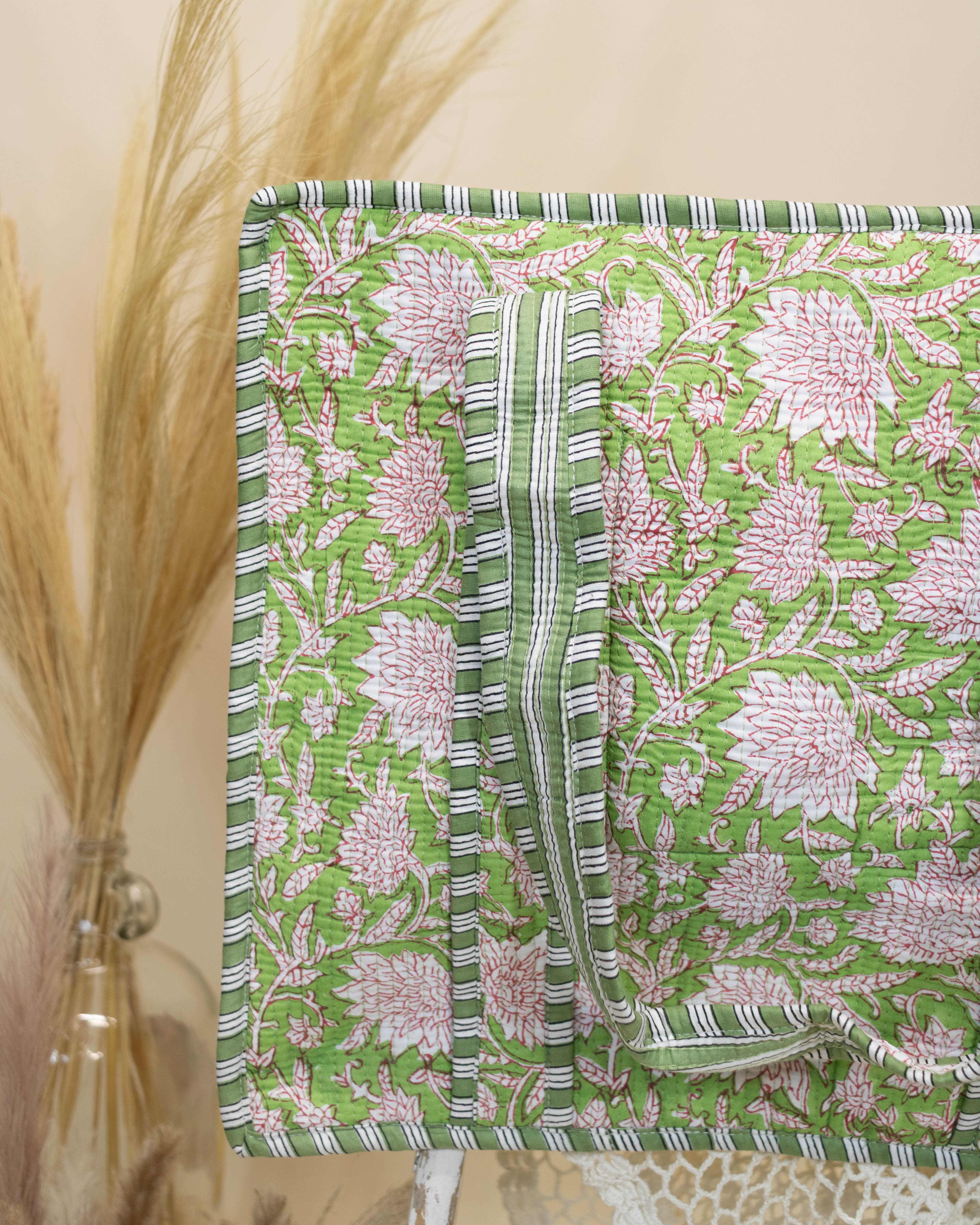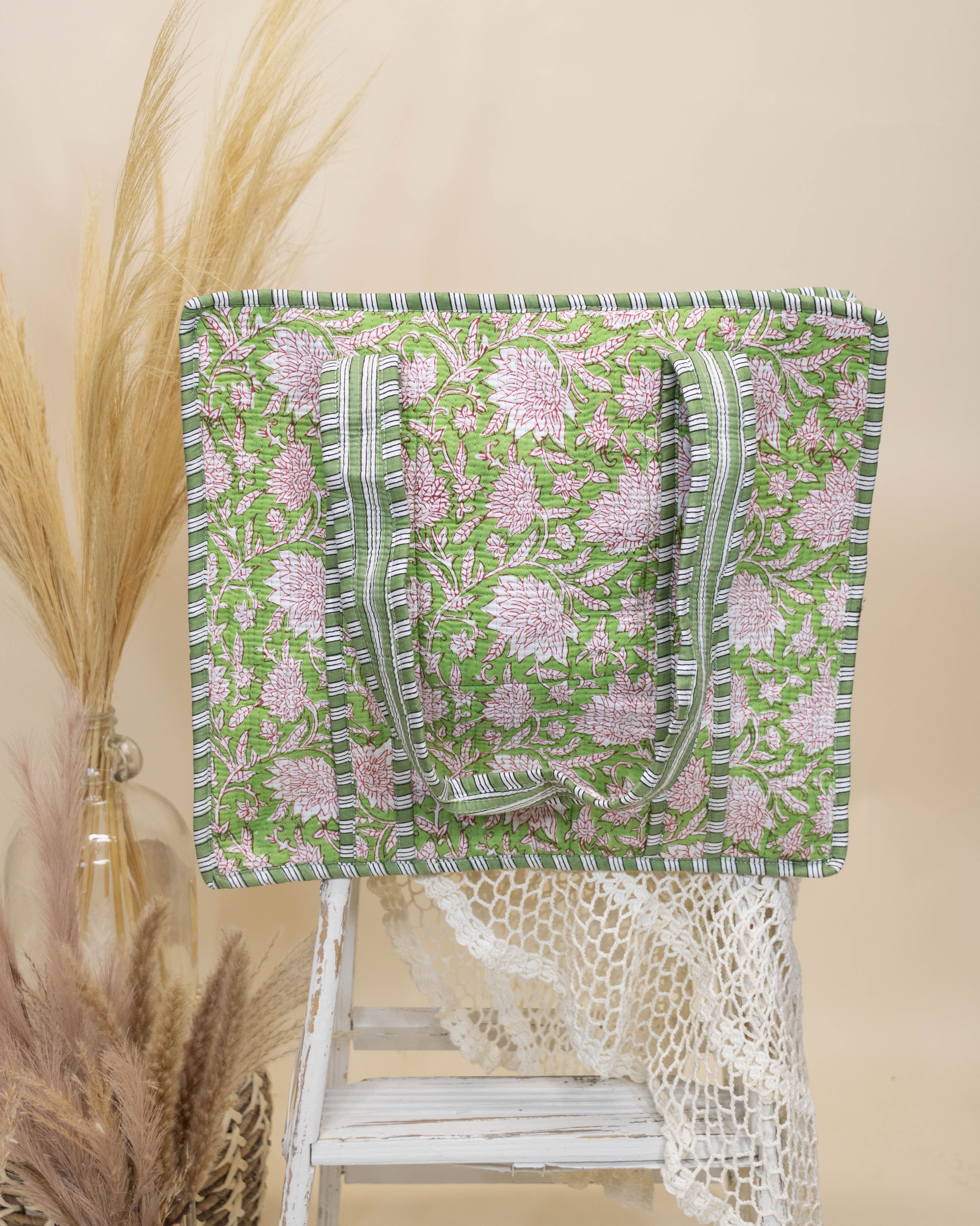 Embrace charm and practicality with the Garden Party Green Floral Quilted Tote Bag. Its quilted design ensures durability while the vibrant floral pattern adds a fresh, stylish touch. Spacious enough for everyday essentials, this tote combines elegance with functionality, making it your perfect companion for errands or outings. Elevate your accessory game with a bag that carries both your belongings and a burst of garden-inspired beauty.