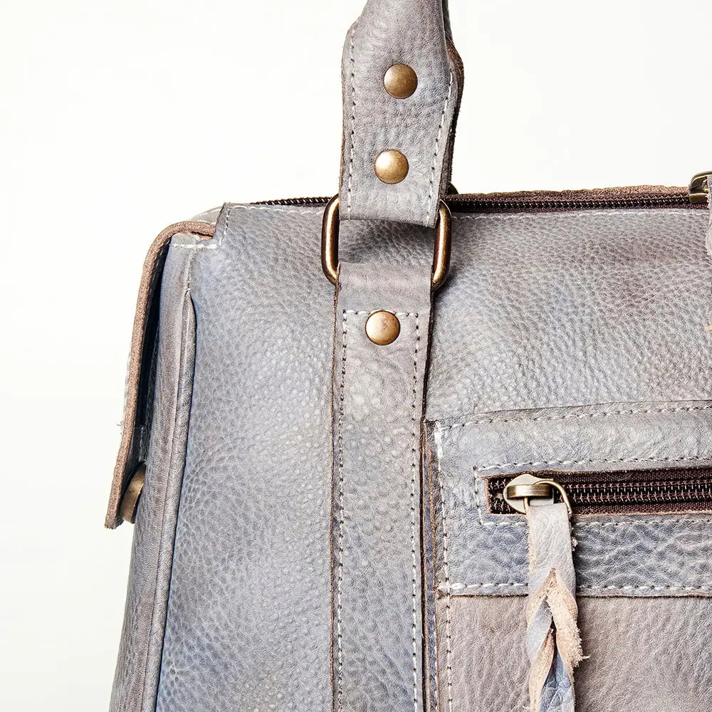 Premium Authentic Full Grain Leather. Luxuriously soft and pliable, this leather ages gracefully with wear, showcasing its enduring beauty. Adjustable genuine leather shoulder strap. Highly durable solid Antique finish metal fittings. Genuine YKK brand known for long lasting and durable zipper closures ensure security of your essentials. Size/Dimensions: 11in (H) X 15in (W) X 3in (D)