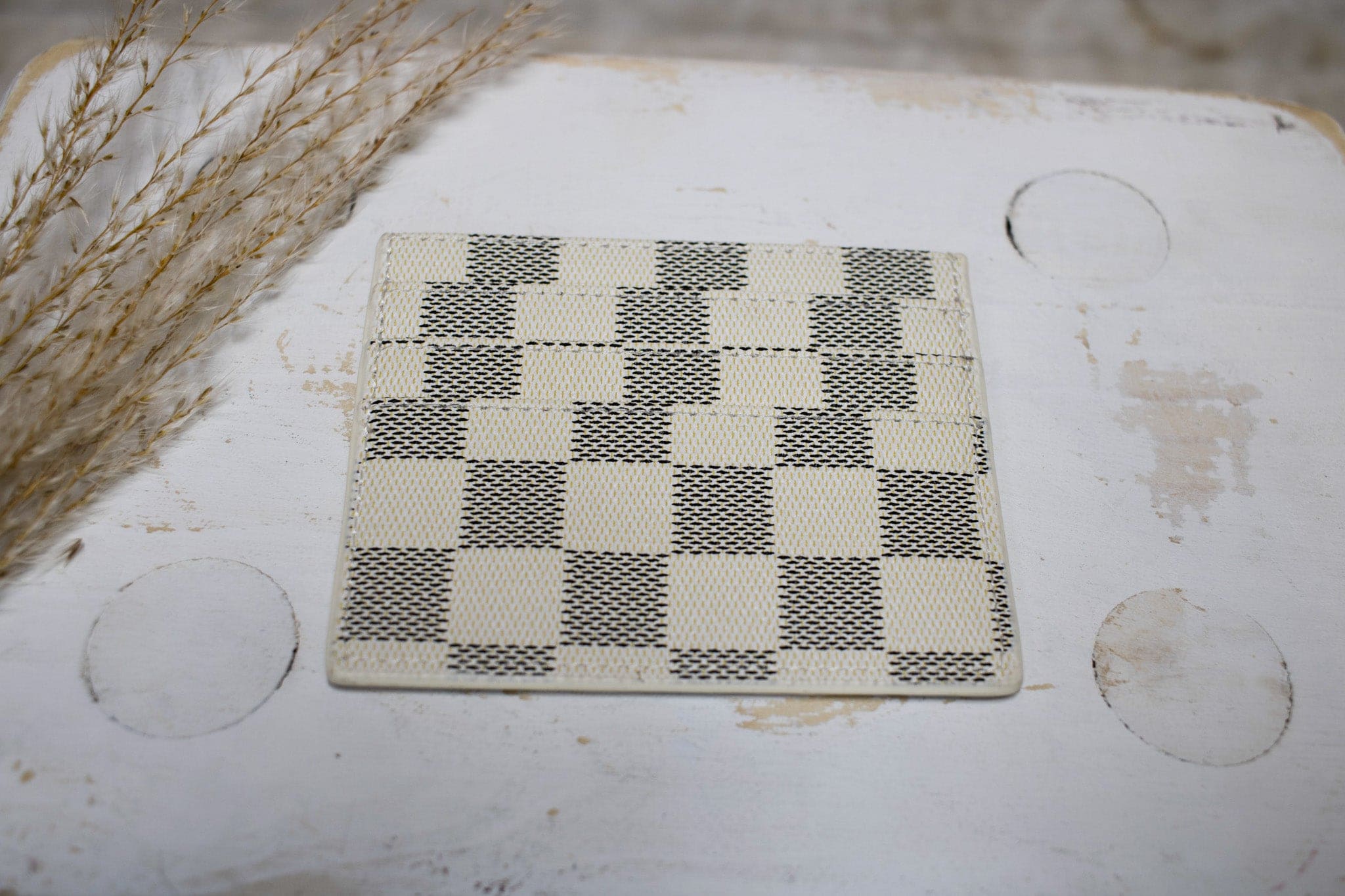 Chelsey Checkered Card Wallet- White
