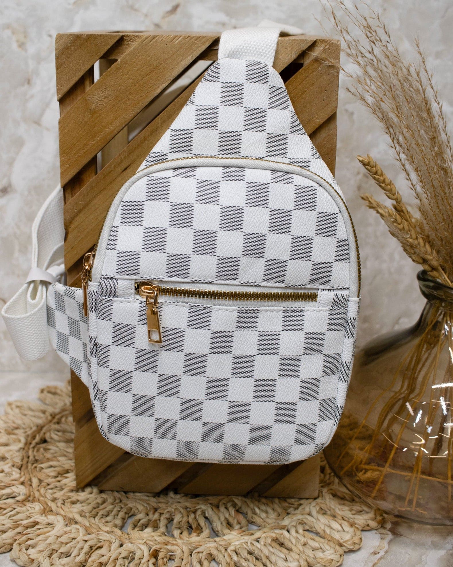 Chelsey Checkered Bum Bag- White