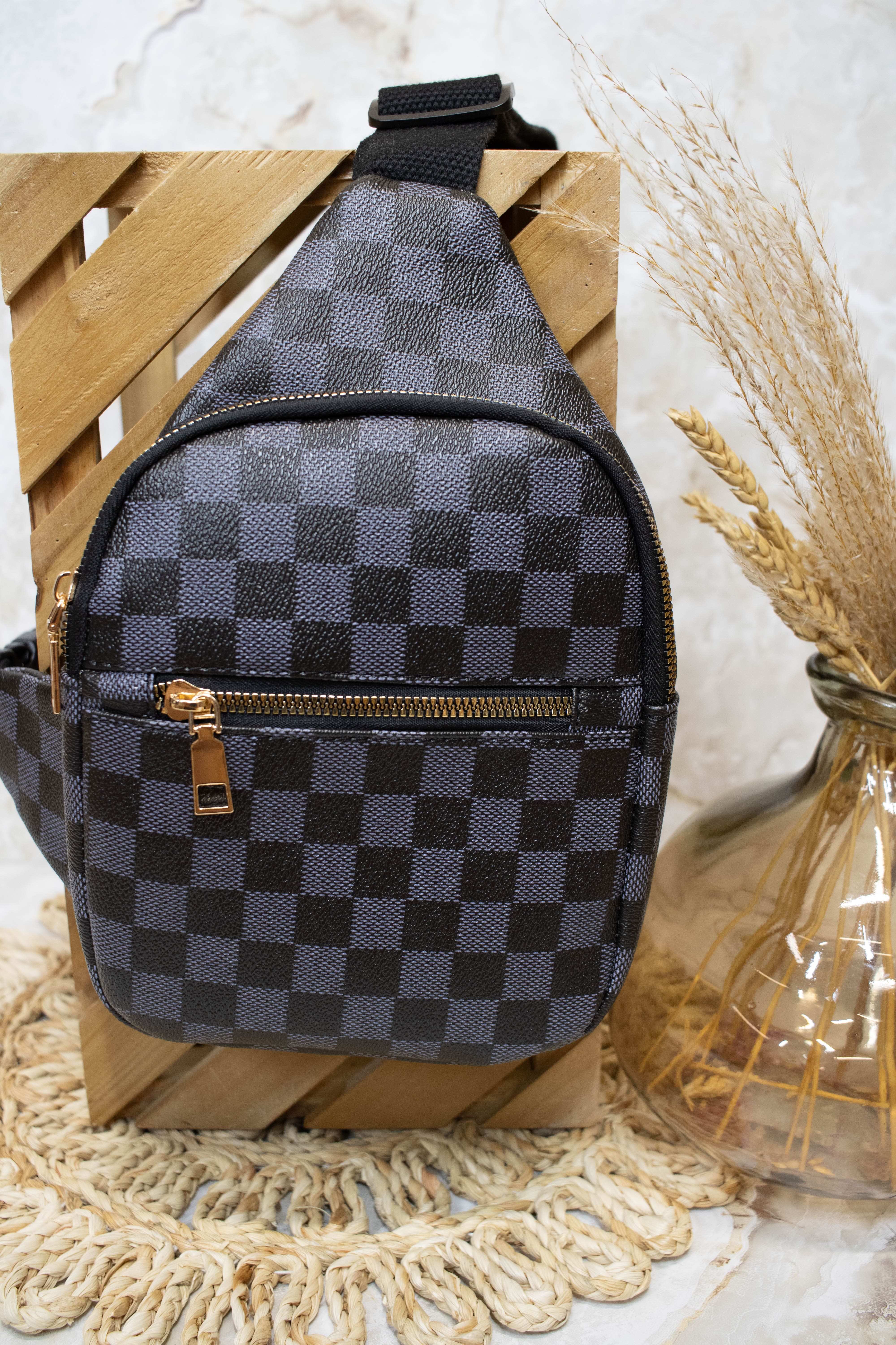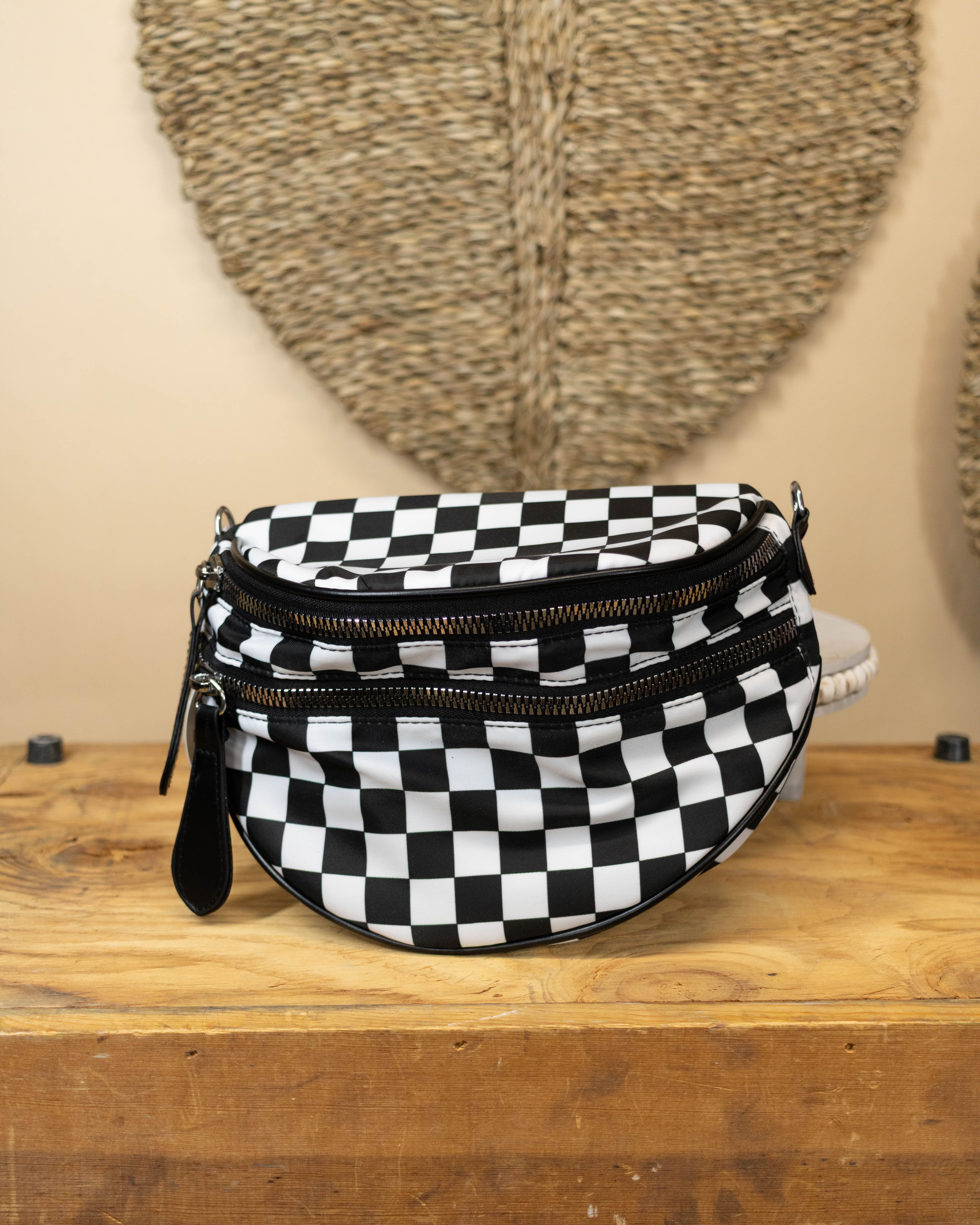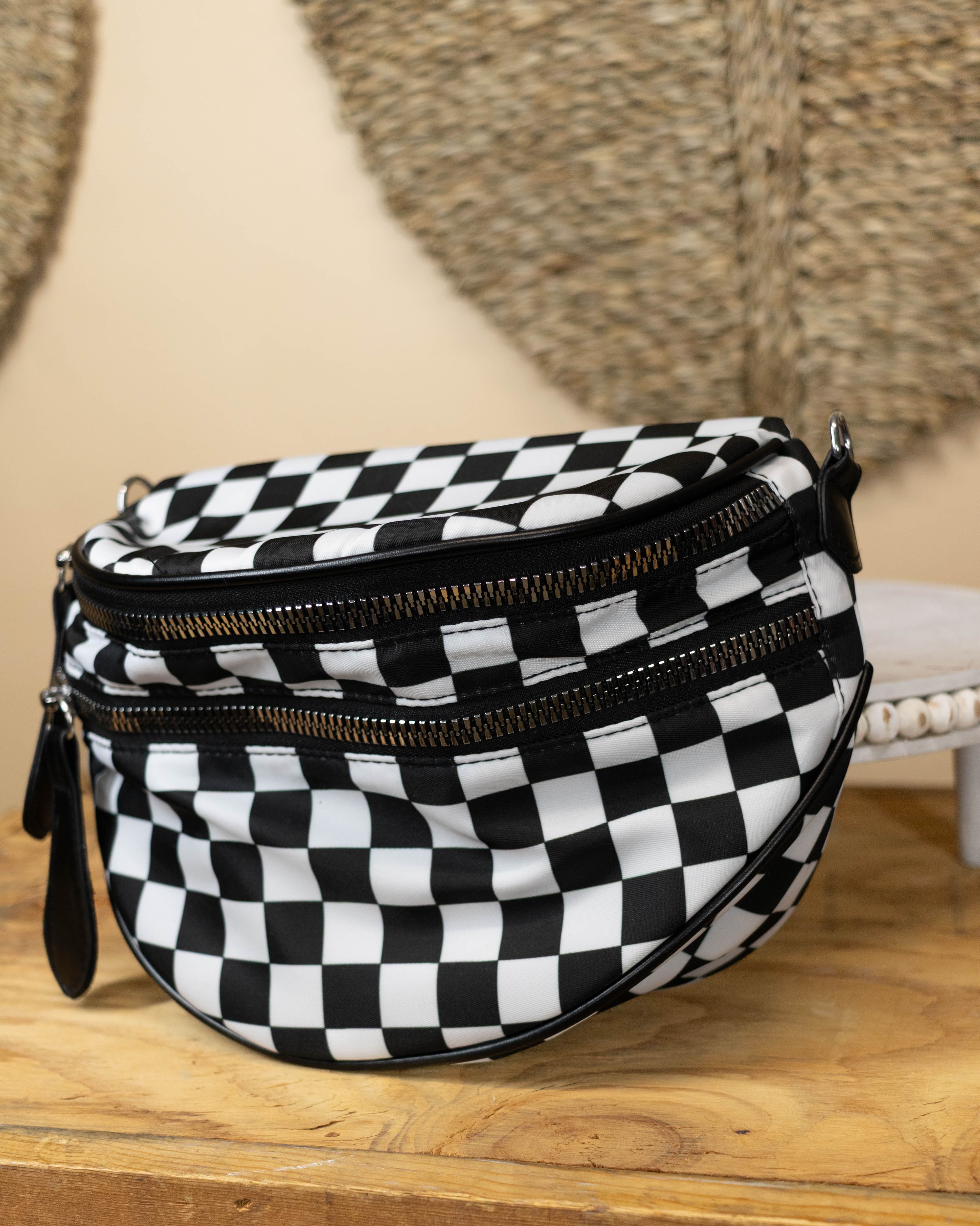 Chelsey Checkered Bum Bag- Black