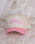 Add a splash of fun to your look with the MOTHER Trucker Hat. Featuring a tan crown and a light pink bill, this hat stands out with its playful upside-down MOTHER embroidery. Perfect for sunny days and casual outings, it’s a stylish way to keep cool and show off your unique vibe.