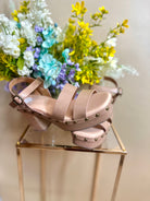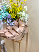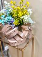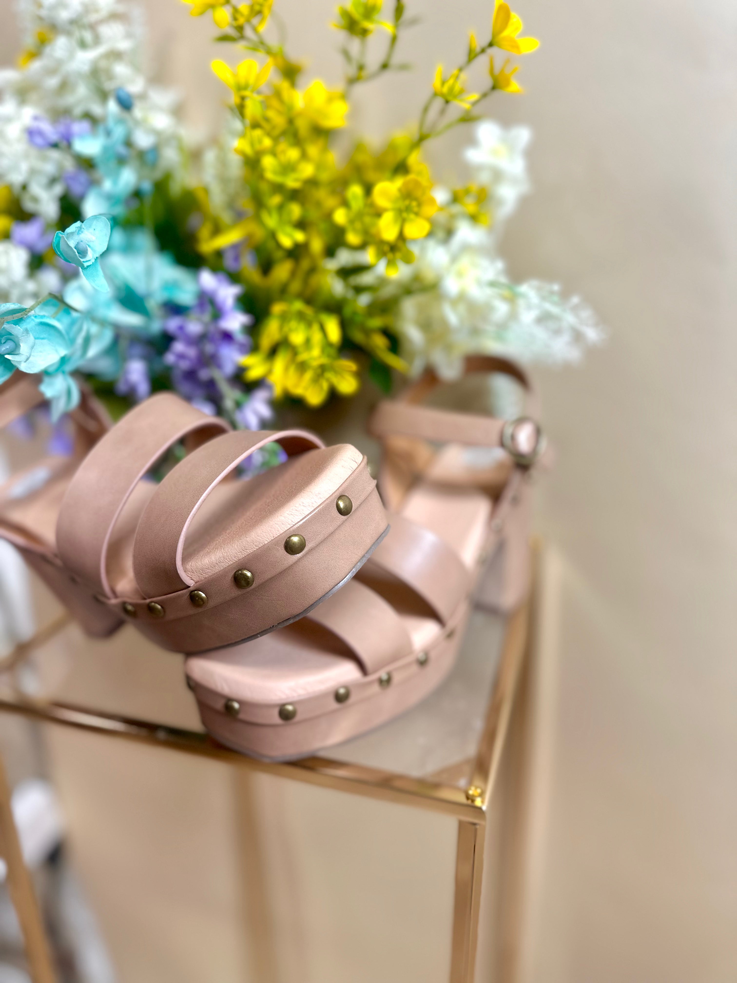 For the boho babes, the Orsha heels are 70's inspired platform sandals with a studded trim. Take us back to the time of free love and good vibes. This platform looks features our ultra padded Signature Yellow Box high rebound foot bed so you can dance the night away.