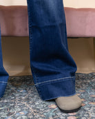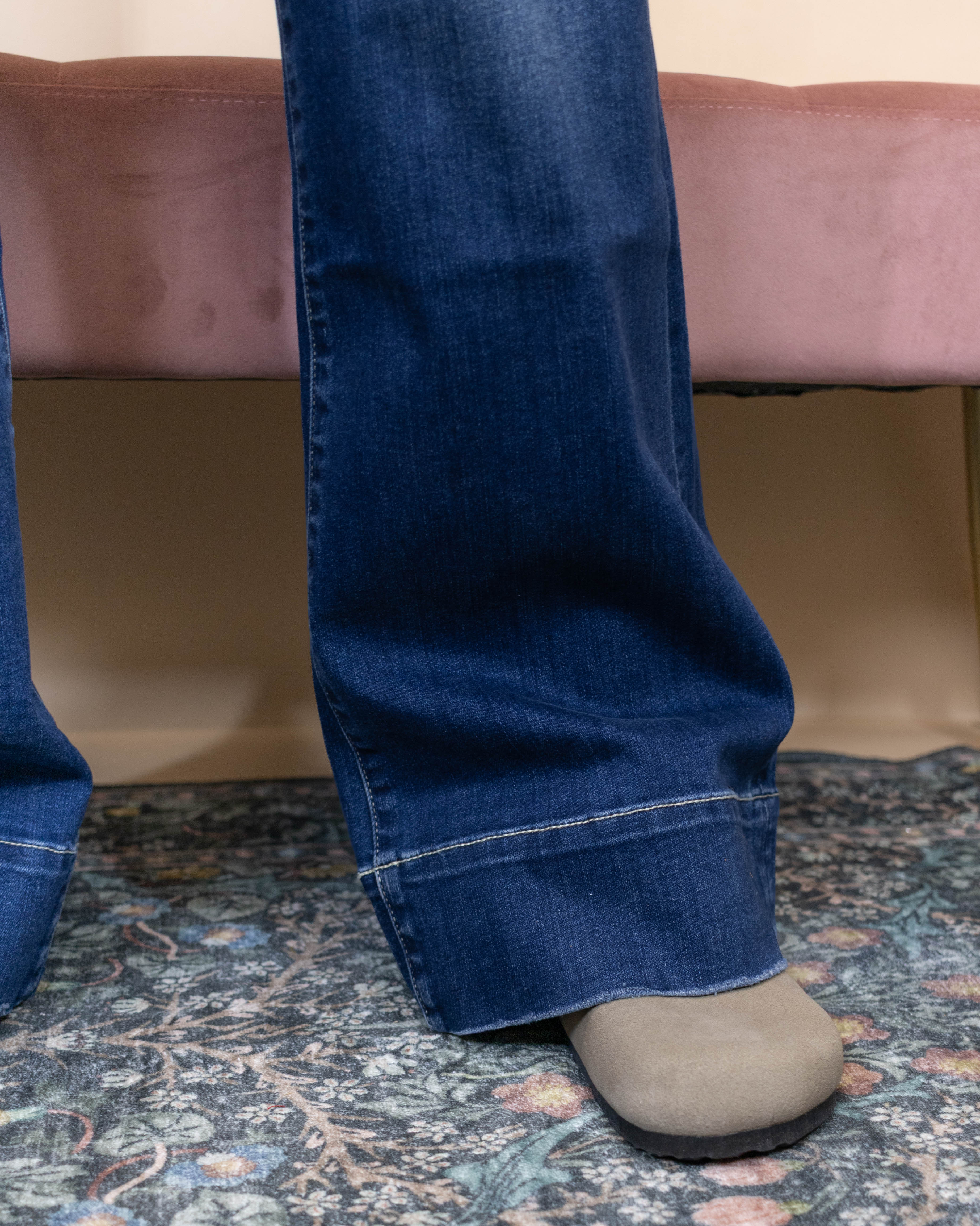 The Right On Time Flare Jean delivers effortless style with a dark wash that flatters every skin tone. Playful details at the hem add personality to this classic silhouette, while the boot-cut design elongates your legs and pairs perfectly with everything from sneakers to heels. A timeless piece that transitions seamlessly from day to night, these jeans are your new go-to for looking polished without trying too hard.