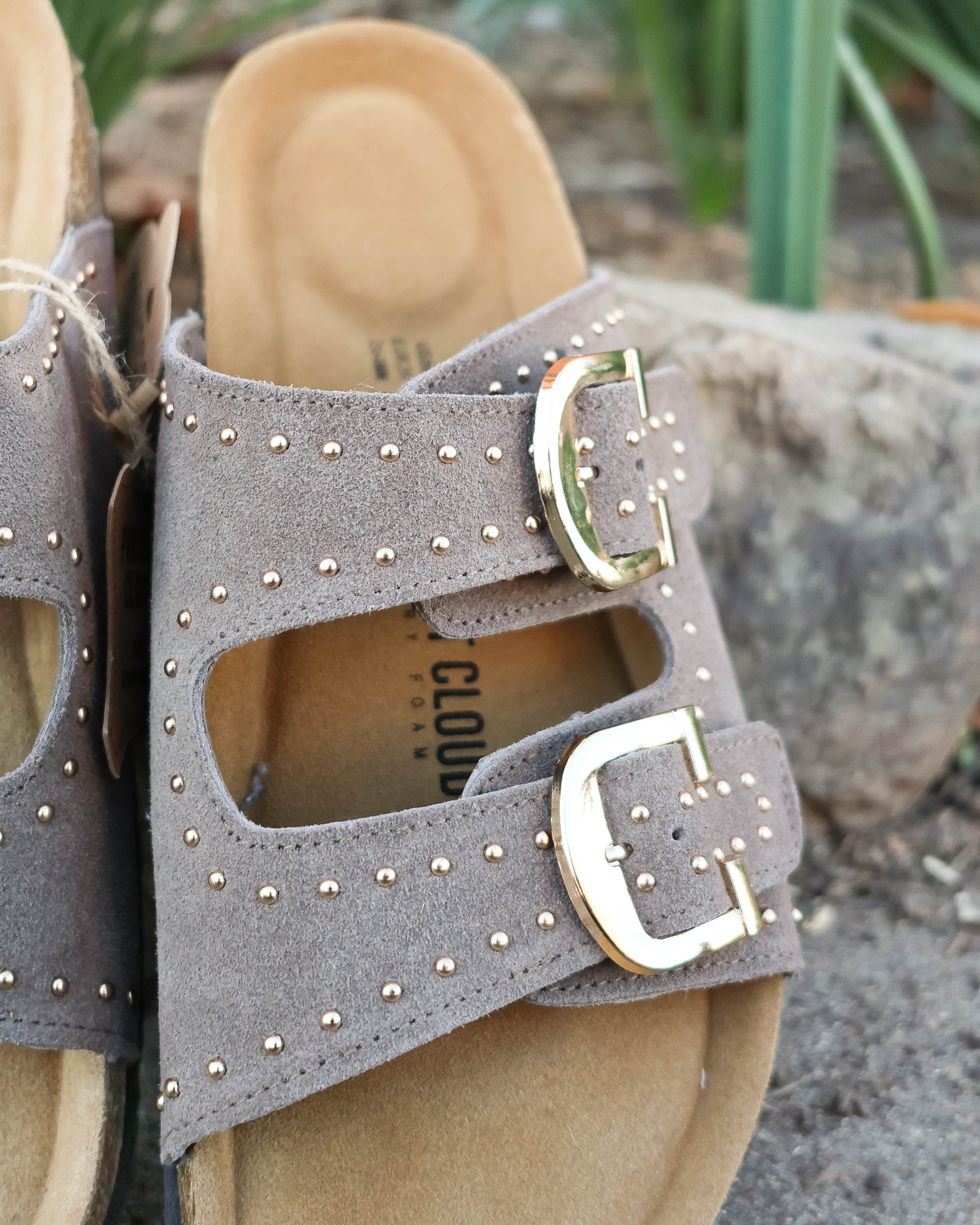 Studded Sandal- Mushroom Suede