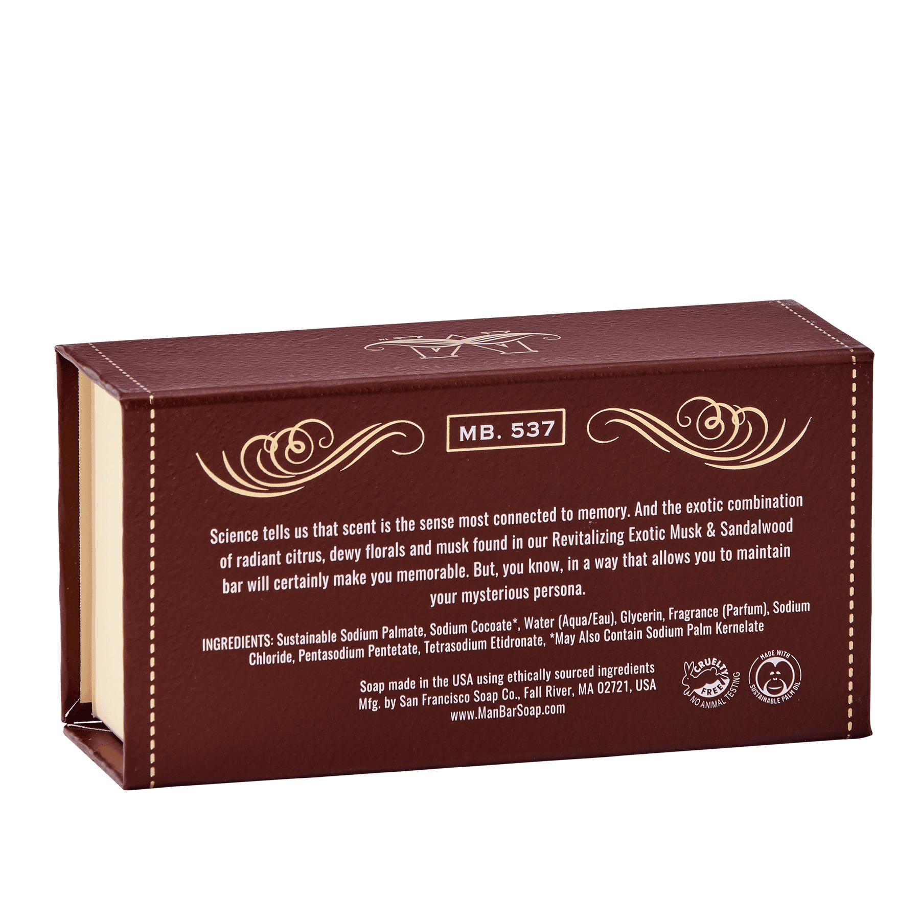 Science tells us that scent is the sense most connected to memory. And the exotic combination of radiant citrus, dewy florals and musk found in our Revitalizing Exotic Musk & Sandalwood bar will certainly make you memorable. But, you know, in a way that allows you to maintain your mysterious persona.