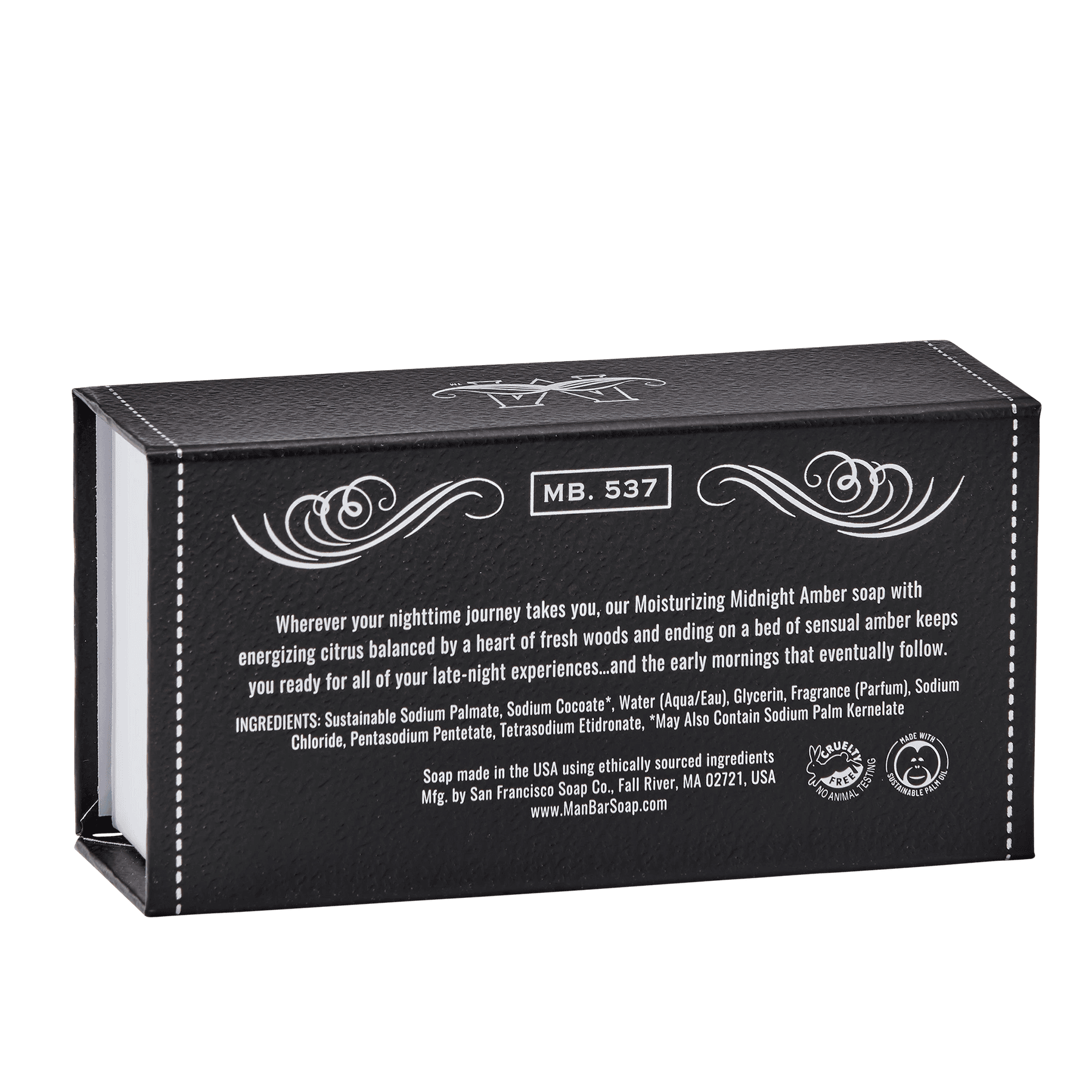 Wherever your nighttime journey takes you, our Moisturizing Midnight Amber soap with energizing citrus balanced by a heart of fresh woods and ending on a bed of sensual amber keeps you ready for all of your late-night experiences…and the early mornings that eventually follow.