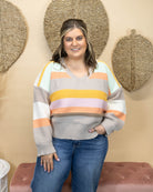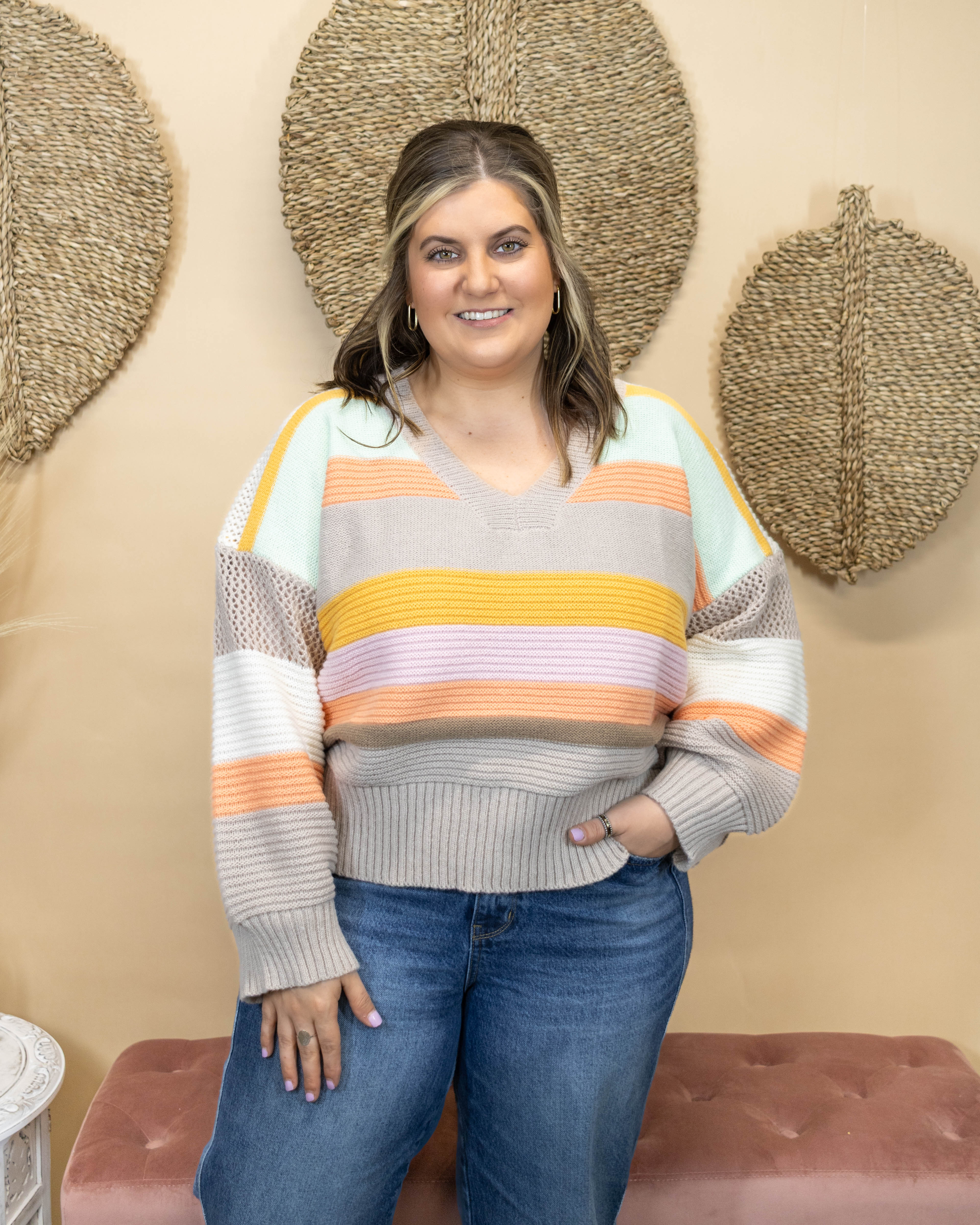 The Before We Know Sweater blends neutral tones with vibrant colors, making it an ideal choice for any season. Its playful knit design on the sleeves adds a unique touch, while the flattering V-neckline enhances your silhouette. Perfect for layering or wearing on its own, this sweater combines style and comfort effortlessly.