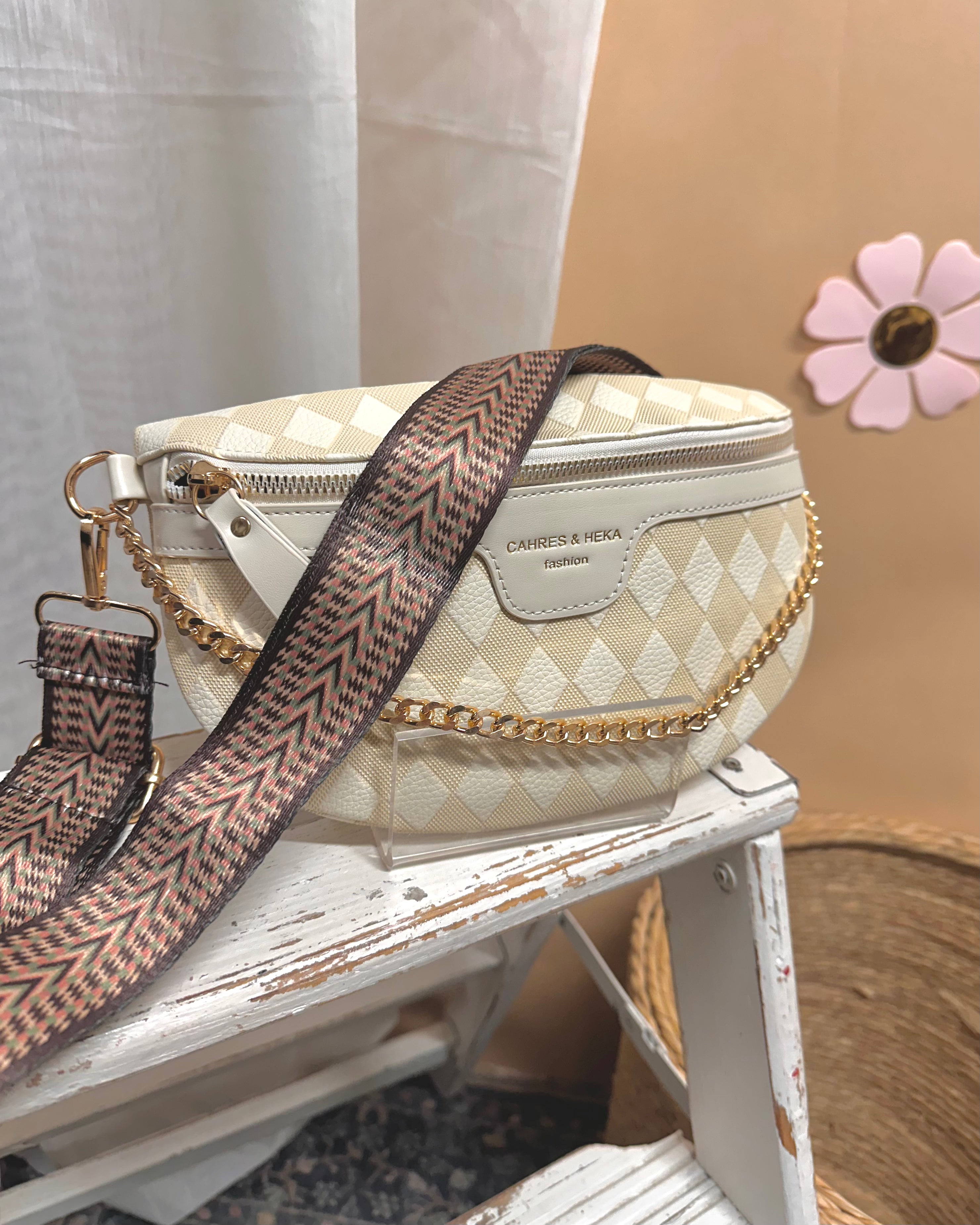 Rock this Check It Out Bag and keep your hands free while staying fashion-forward. The eye-catching checkered print pairs perfectly with a sleek gold chain detail that elevates any outfit. Slip on the printed strap and you're ready to go—whether you're hitting the shops or catching up with friends. Compact, stylish, and totally functional, this bum bag is your new go-to accessory for on-the-move confidence.