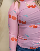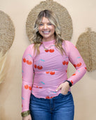 Stand out this spring and summer in the Cherries Sweet Mesh Top, a vibrant and playful piece designed for unforgettable nights out. Its bright cherry pattern adds a fun pop of color, while the delicate mesh fabric keeps you cool and comfortable. The charming ruffle detail at the bottom enhances your silhouette with a flirty, feminine touch. Perfect for pairing with your favorite jeans or skirts, this top brings effortless style and lively energy to your seasonal wardrobe.