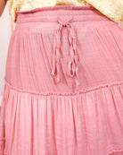 This beautiful dusty rose maxi features delicate ruffled details and an elastic waist that moves with you. Fully lined for confidence and ease, it works for any occasion—casual or dressed up.