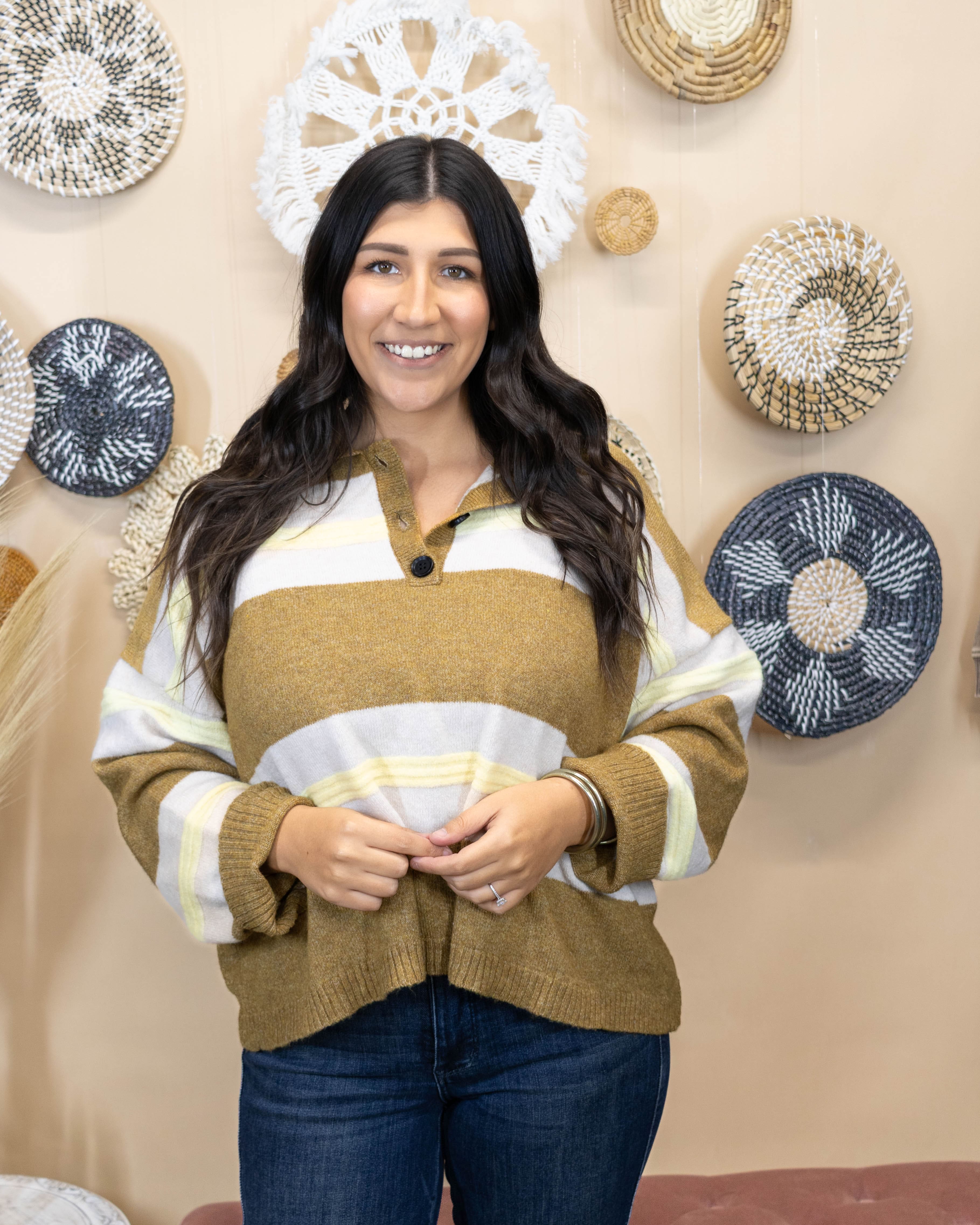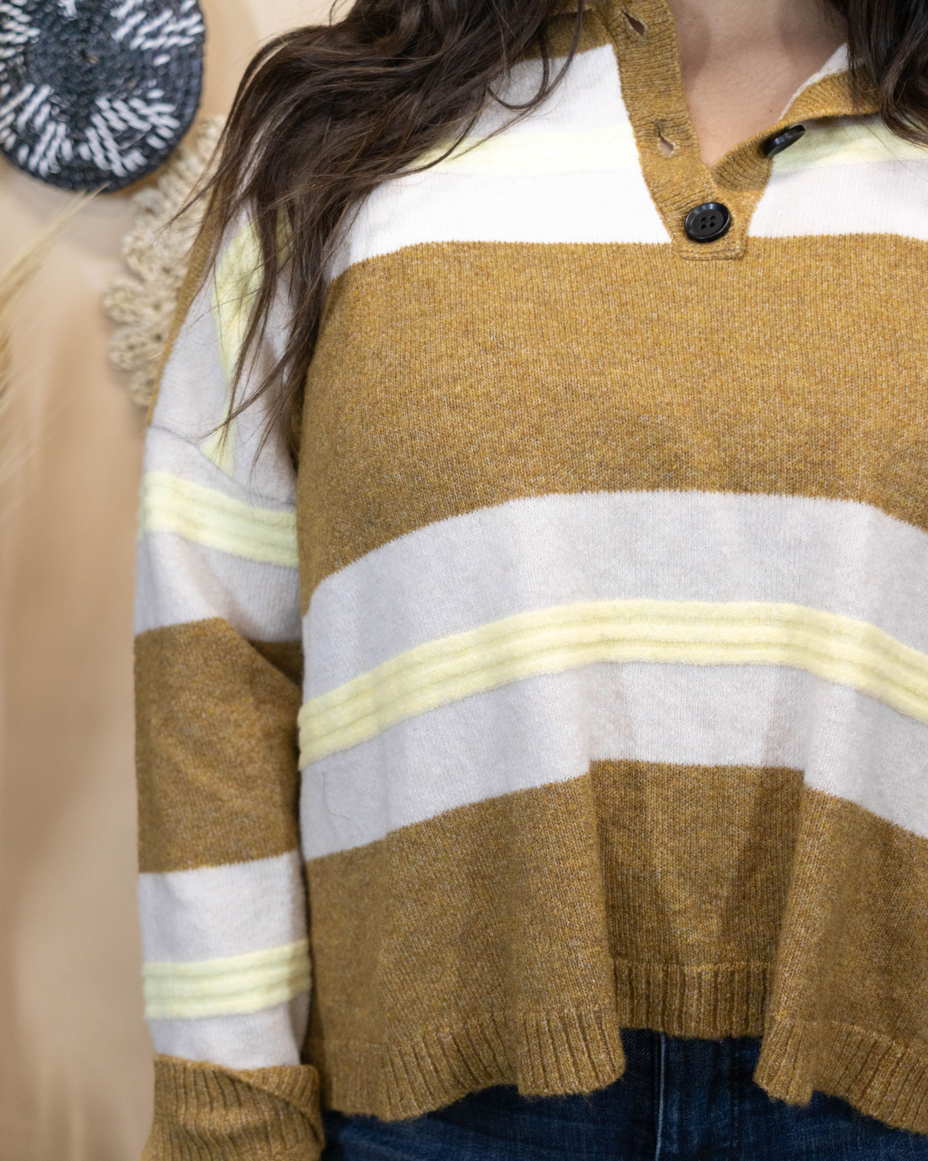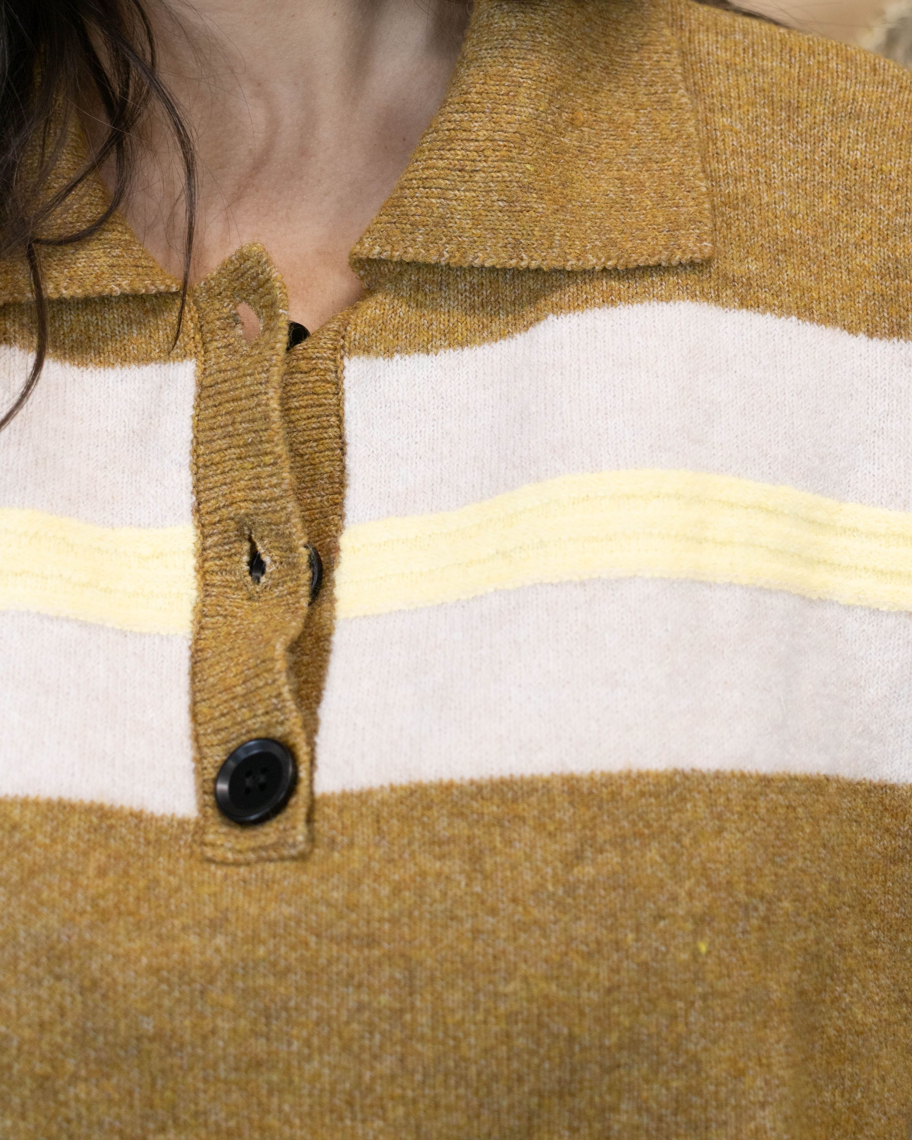 Elevate your everyday wardrobe with this striking yellow striped top, designed to brighten any occasion. The flattering V-neckline creates a refined silhouette while the bold stripe pattern adds visual interest and dimension. Versatile enough for casual outings or layered under jackets for cooler days, this piece effortlessly transitions from season to season. Perfect for those who appreciate timeless style with a modern edge, this sweater becomes an instant favorite in your closet.