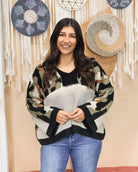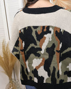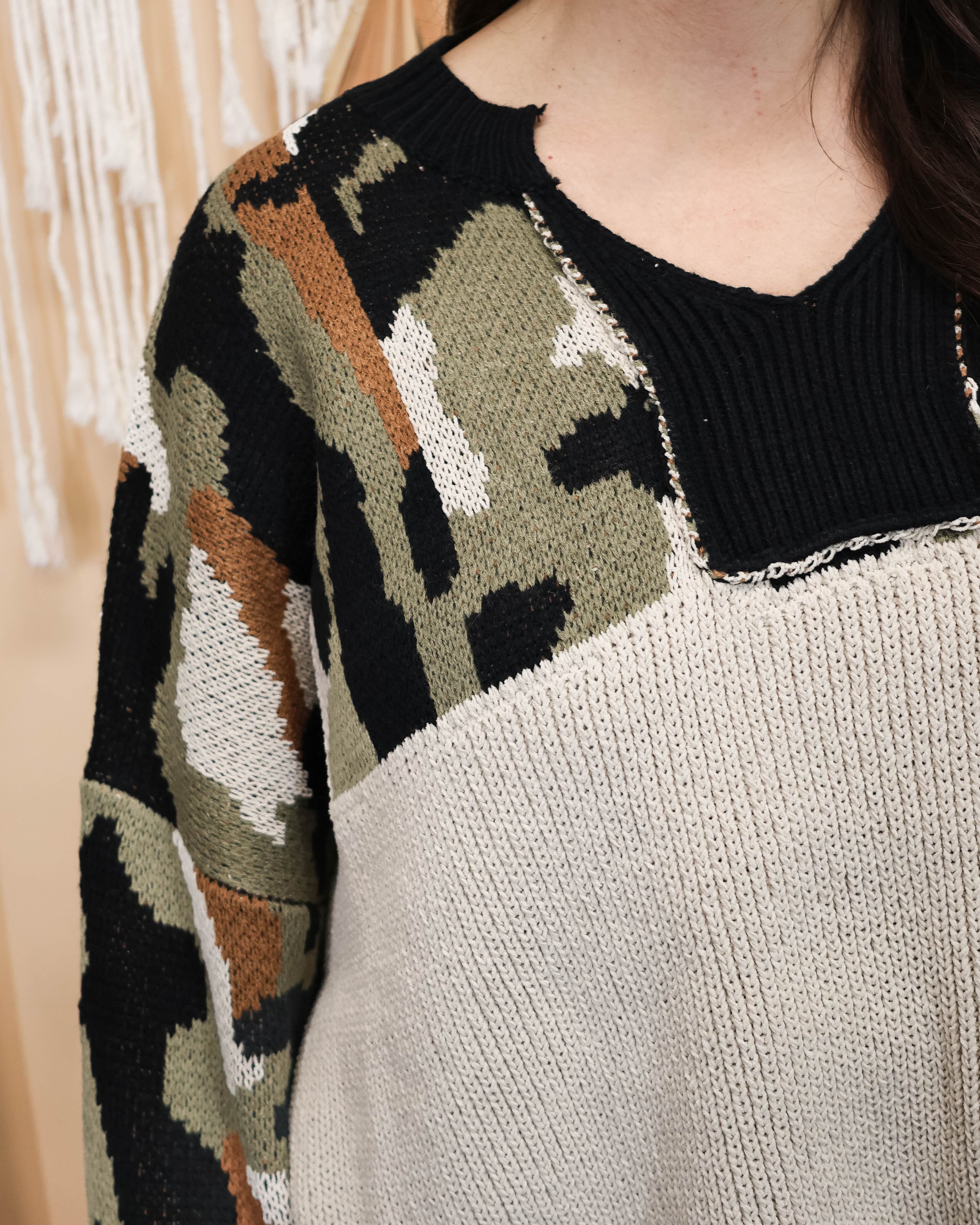 We are loving this printed sweater! Featuring a subtle camo print, and a chunky knit, this sweater is sure to make your outfit fun!