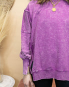 Embrace cozy style with the How I Feel Sweatshirt in Light Plum. Featuring wider sleeves and a playful pink hue, this long-sleeve shirt adds a fun, relaxed vibe to your wardrobe. Perfect for lounging or casual outings, its unique cut offers both comfort and a trendy look that stands out effortlessly.