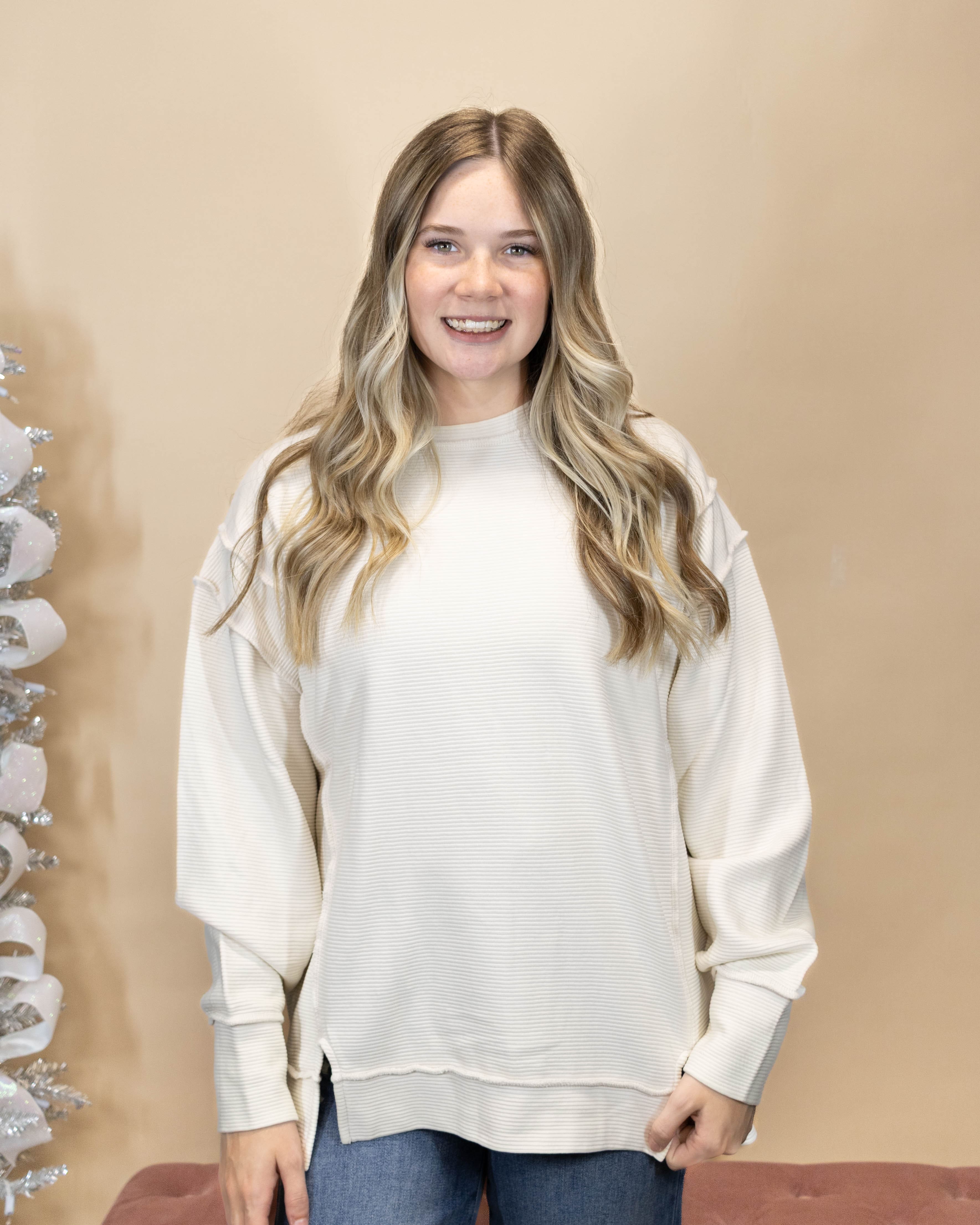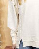 Effortless style meets everyday comfort with this versatile sweatshirt. The relaxed fit and subtle side slits create a modern silhouette that works seamlessly from casual outings to laid-back weekends. Crafted in a warm sand beige tone, it pairs beautifully with your favorite basics or layered pieces. Long sleeves provide gentle coverage while the lightweight construction keeps you comfortable all day long. A wardrobe essential that delivers both sophistication and ease.